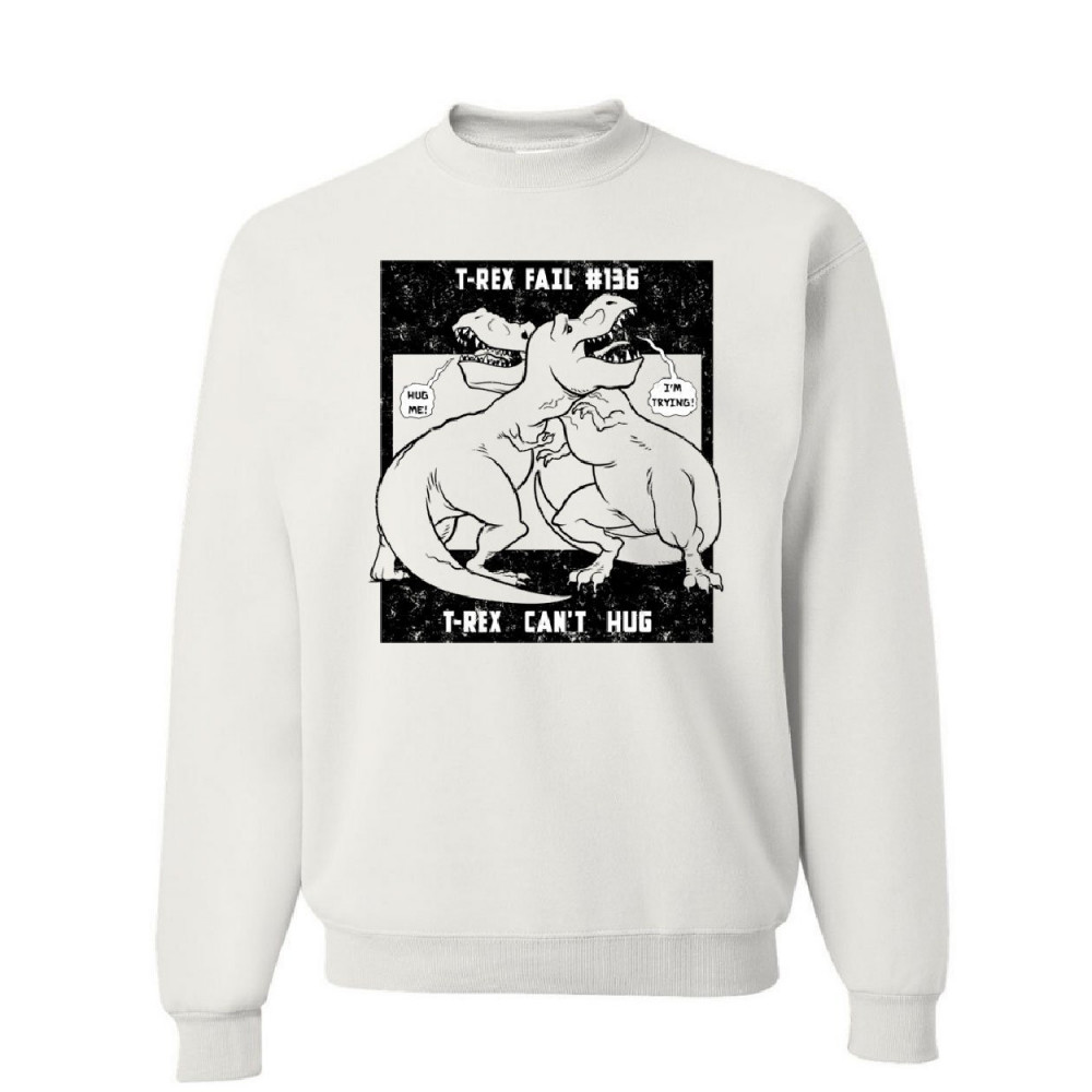 T-REX CAN'T HUG sweatshirt funny t-rex dinosaur fail tyrannosaurus sweater white