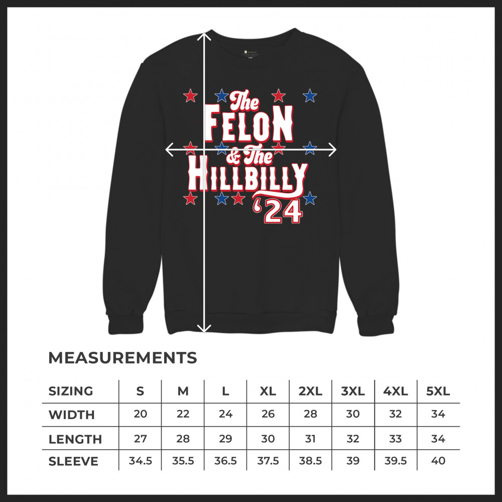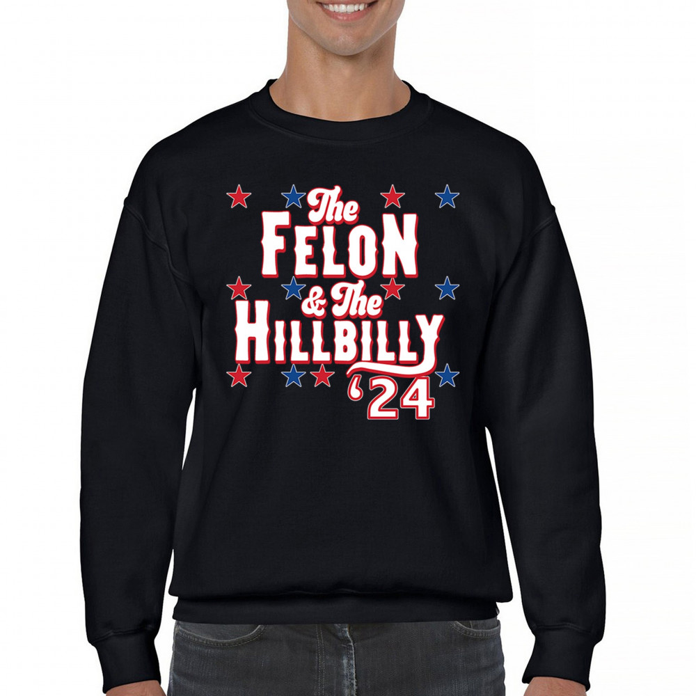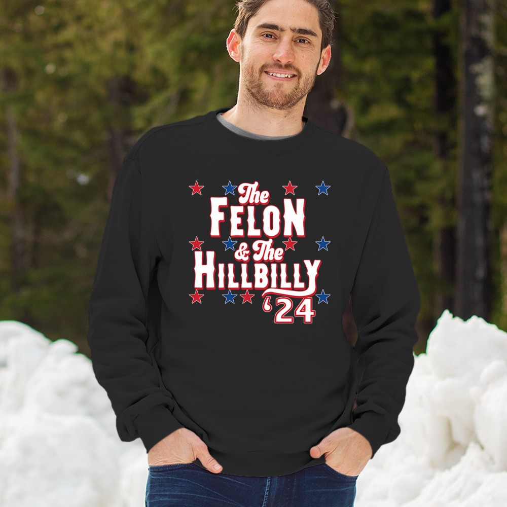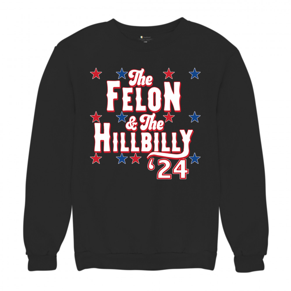 THE FELON AND THE HILLBILLY 24 VOTE TRUMP VANCE sweatshirt maga 2024 crewneck black