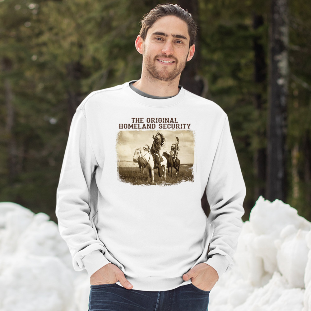 THE ORIGINAL HOMELAND SECURITY sweatshirt indigenous tribal chiefs crewneck white