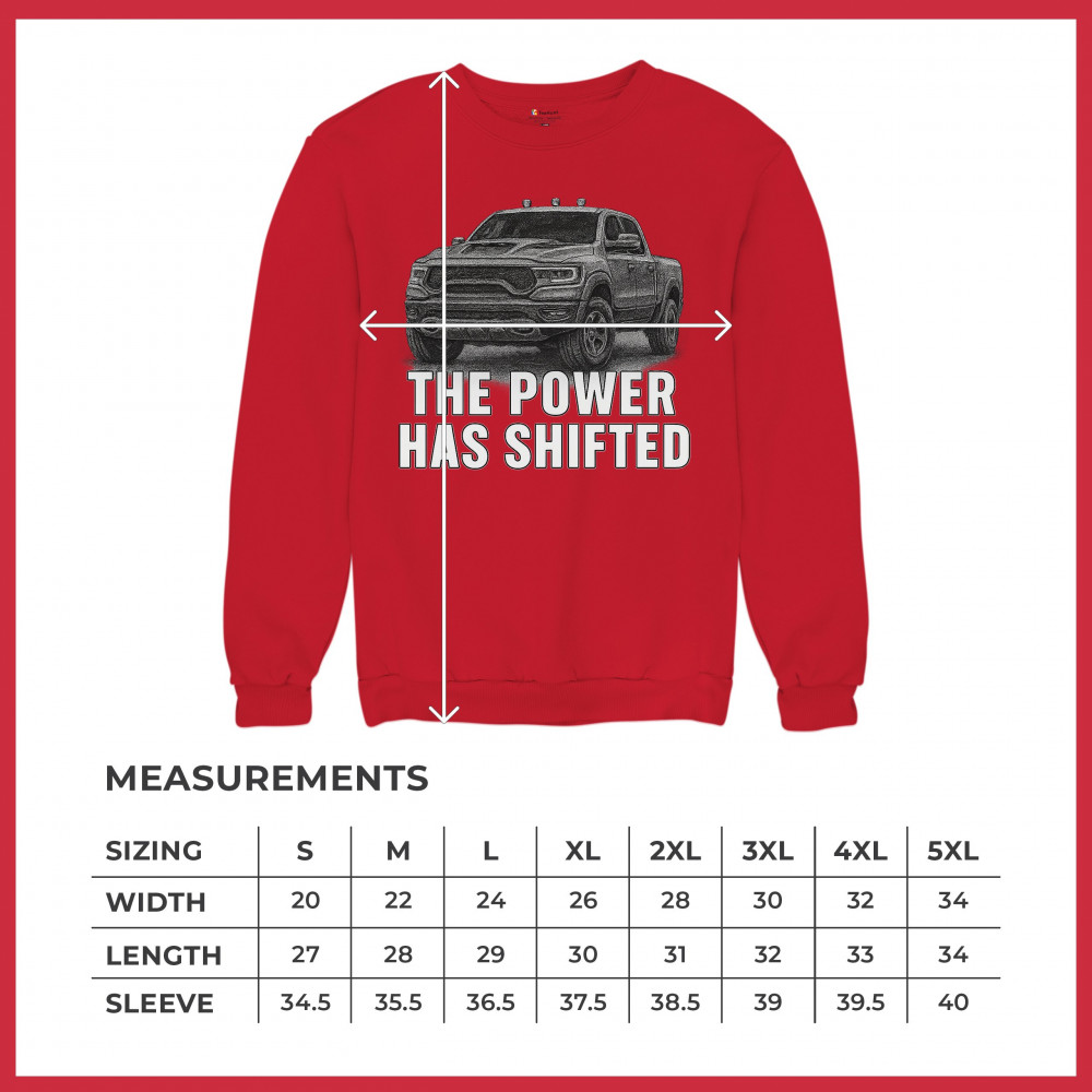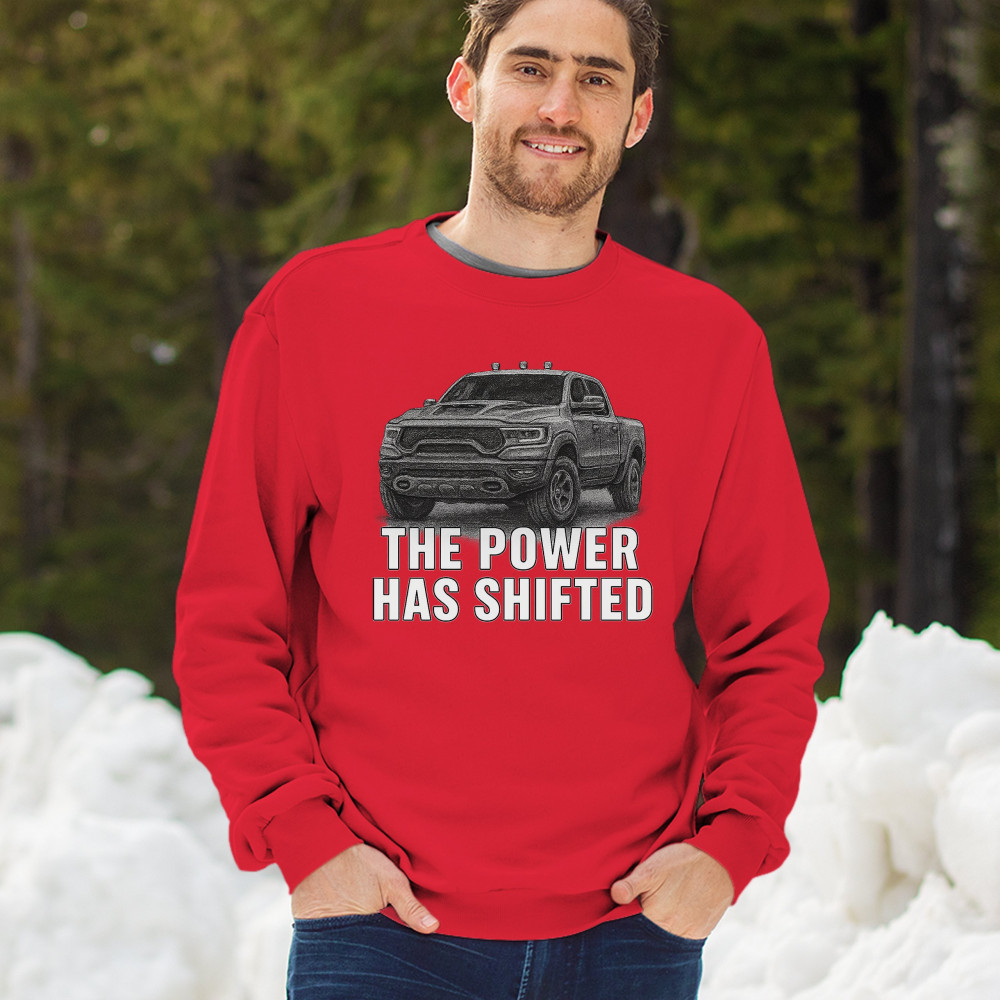 THE POWER HAS SHIFTED sweatshirt american 4x4 offroad pickup truck crewneck red