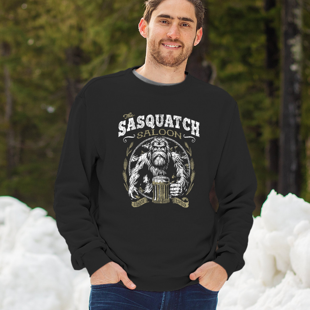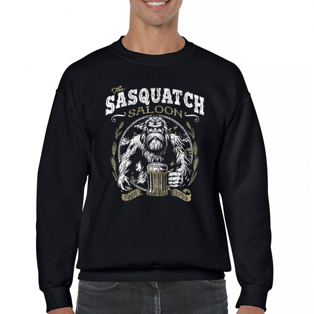 "Sasquatch Saloon" – A bold Bigfoot design for beer lovers and cryptid fans. Perfect for casual wear, parties, or as a gift for Bigfoot enthusiasts!