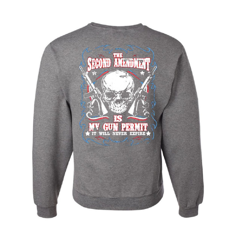 2ND AMENDMENT IS MY GUN PERMIT crew neck sweatshirt gun rights gray