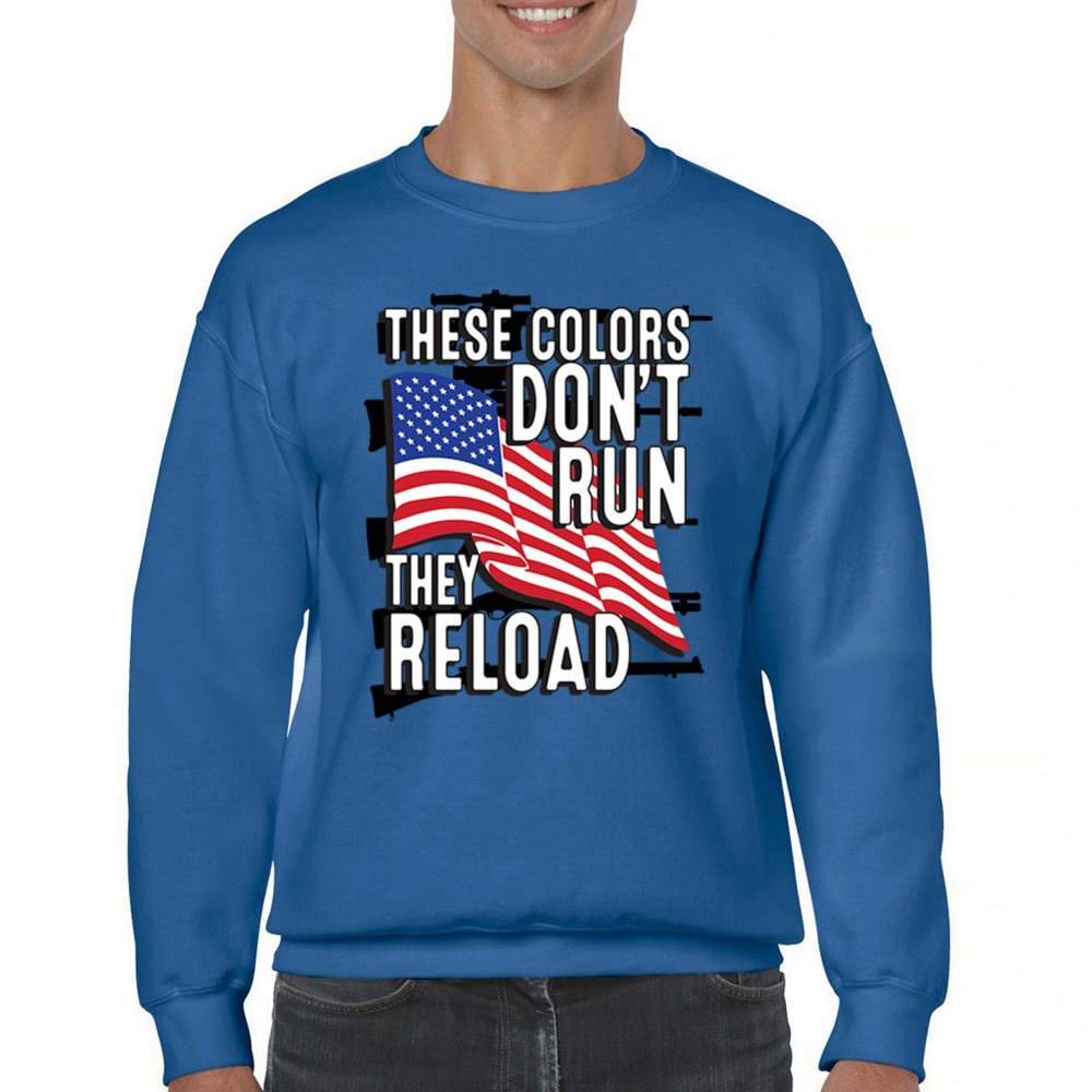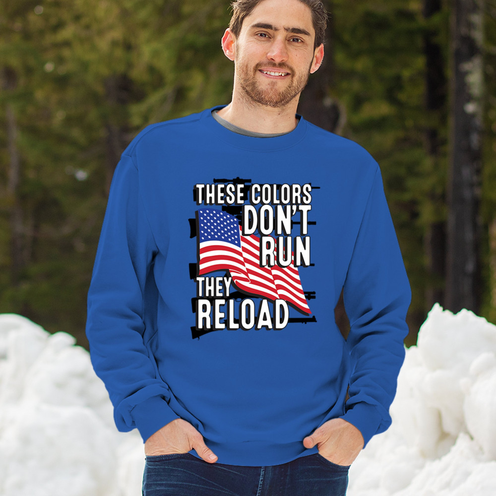Discover the tee that boldly proclaims American resilience and liberty: 'These Colors Don't Run, They Reload'—a must-have for patriots and veterans.