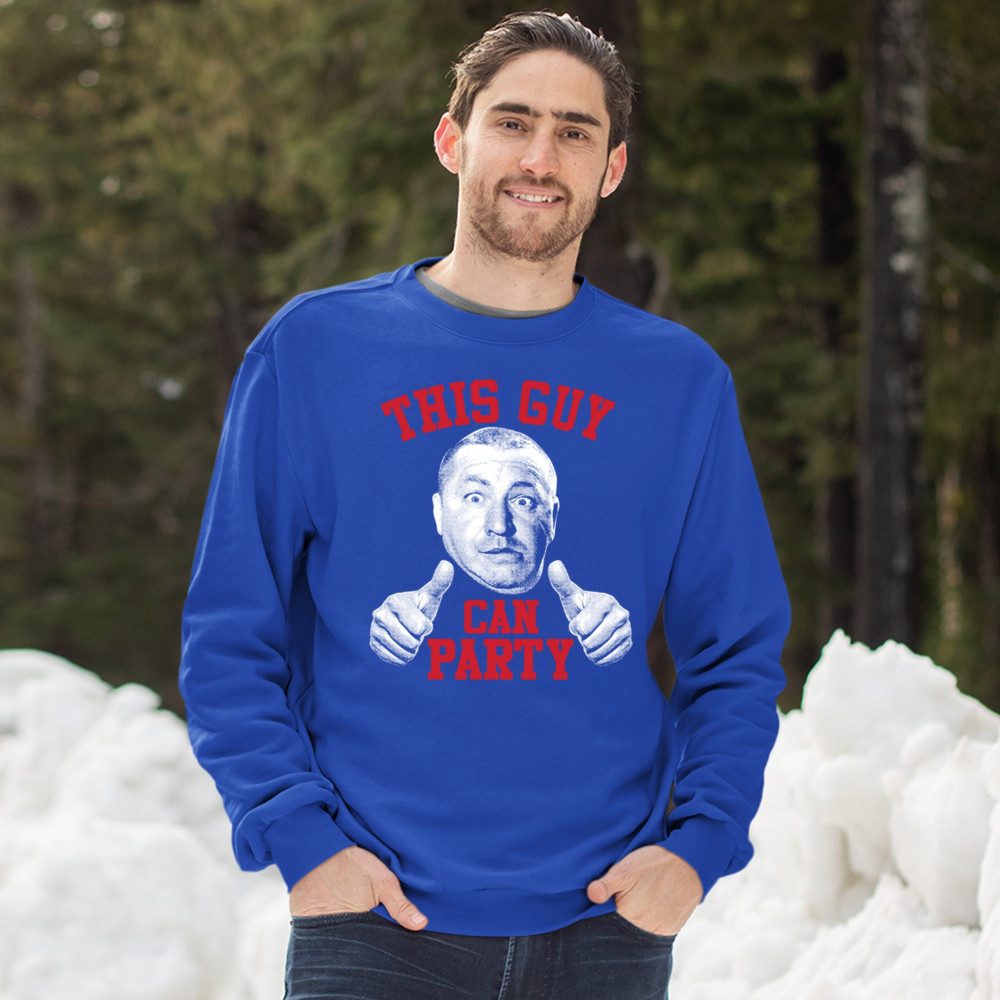 THIS GUY CAN PARTY sweatshirt curly howard the three stooges crewneck royal blue