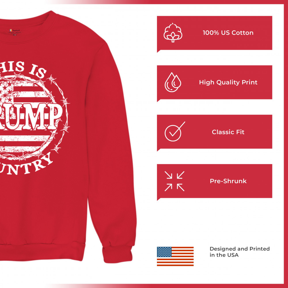 Celebrate your unwavering support for Trump and JD Vance with our exclusive "Trump Country" design. Featuring a vintage American flag encircled by barbed wire, this piece makes a strong statement against Kamala Harris and her policies. It's perfect for conservatives who believe in the America First movement. Whether you're attending a rally, political event, or simply expressing your patriotism, this design is ideal for showcasing your values and support for Trump's vision for America.