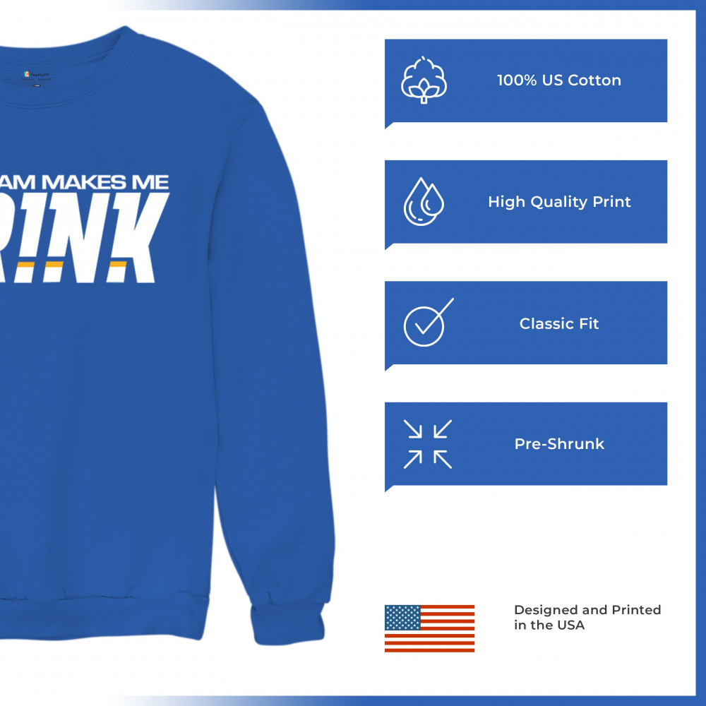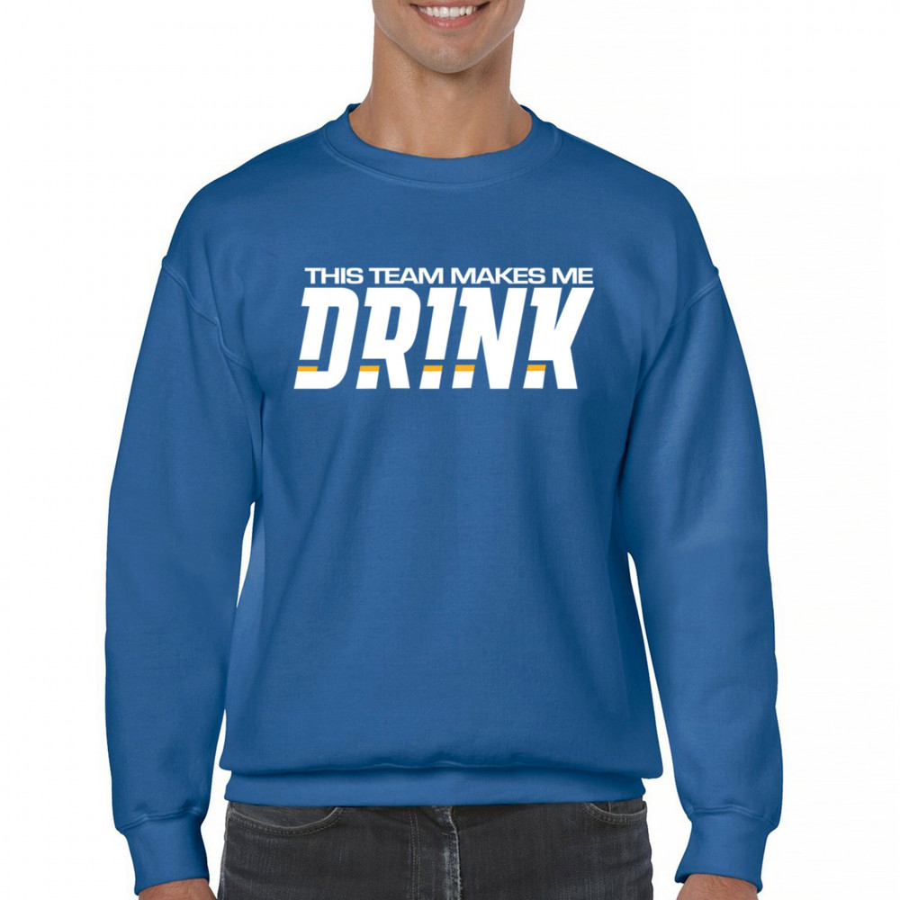 THIS TEAM MAKES ME DRINK crewneck sweatshirt pittsburgh football fan tailgate royal blue