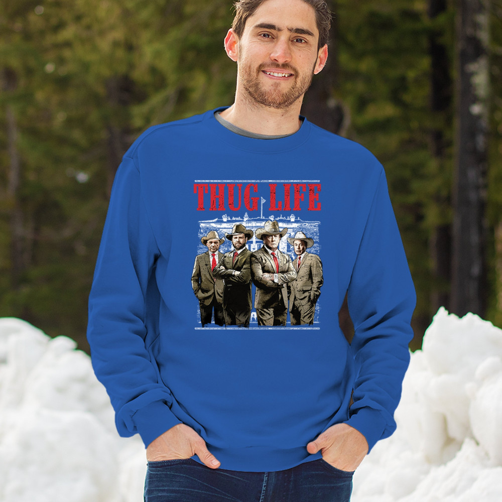 Make a statement with the Thug Life T-shirt, a must-have for every Republican and Trump supporter who stands for America First. Designed for those who believe in We The People Have Spoken, this shirt is perfect for rallies, events, or everyday wear. Featuring bold imagery and high-quality materials, it's a tribute to conservative values, the Red Wave, and the party of common sense. Get yours today and show your patriotic spirit.