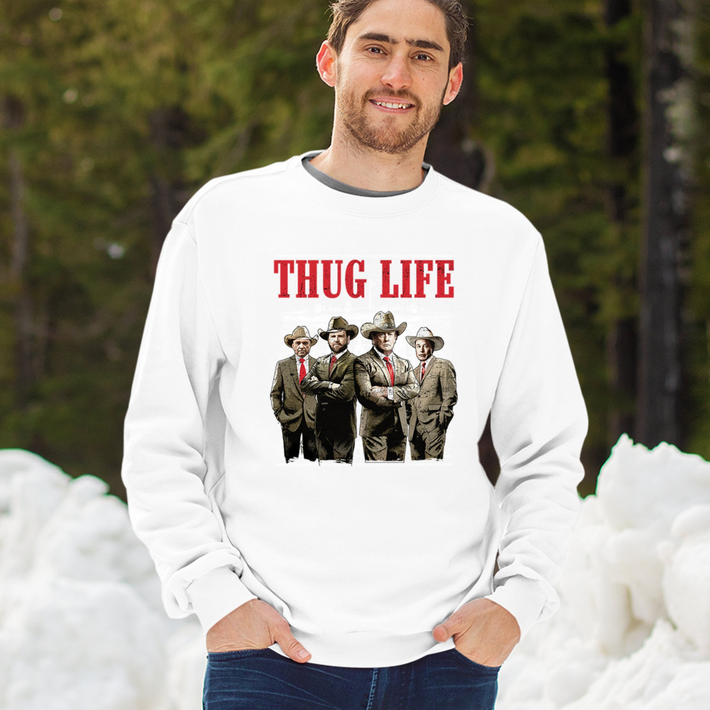 Make a statement with the Thug Life T-shirt, a must-have for every Republican and Trump supporter who stands for America First. Designed for those who believe in We The People Have Spoken, this shirt is perfect for rallies, events, or everyday wear. Featuring bold imagery and high-quality materials, it's a tribute to conservative values, the Red Wave, and the party of common sense. Get yours today and show your patriotic spirit.