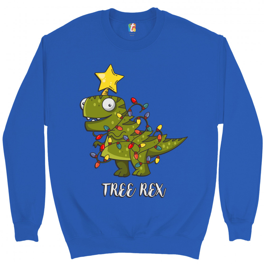 TREE REX sweatshirt funny tyronnasaurus rex christmas tree dinosaur crewneck royal blue