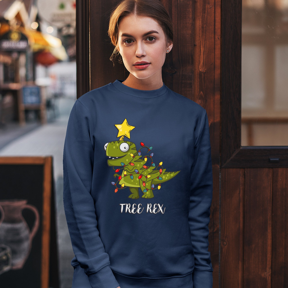 TREE REX sweatshirt funny tyronnasaurus rex christmas tree dinosaur crewneck navy blue