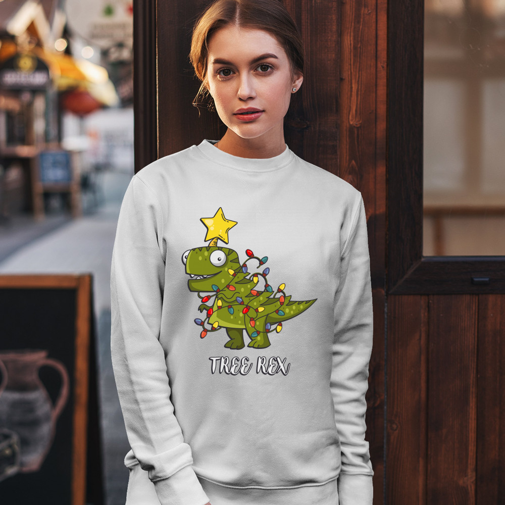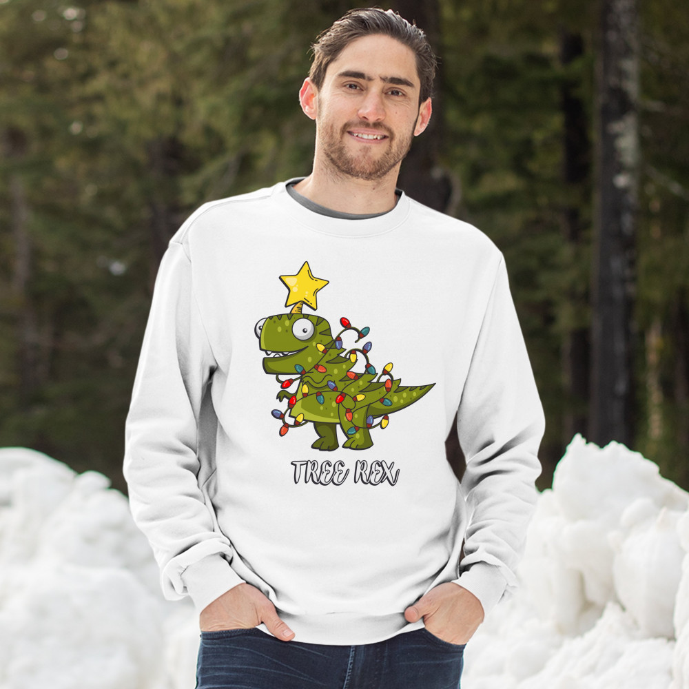 TREE REX sweatshirt funny tyronnasaurus rex christmas tree dinosaur crewneck white