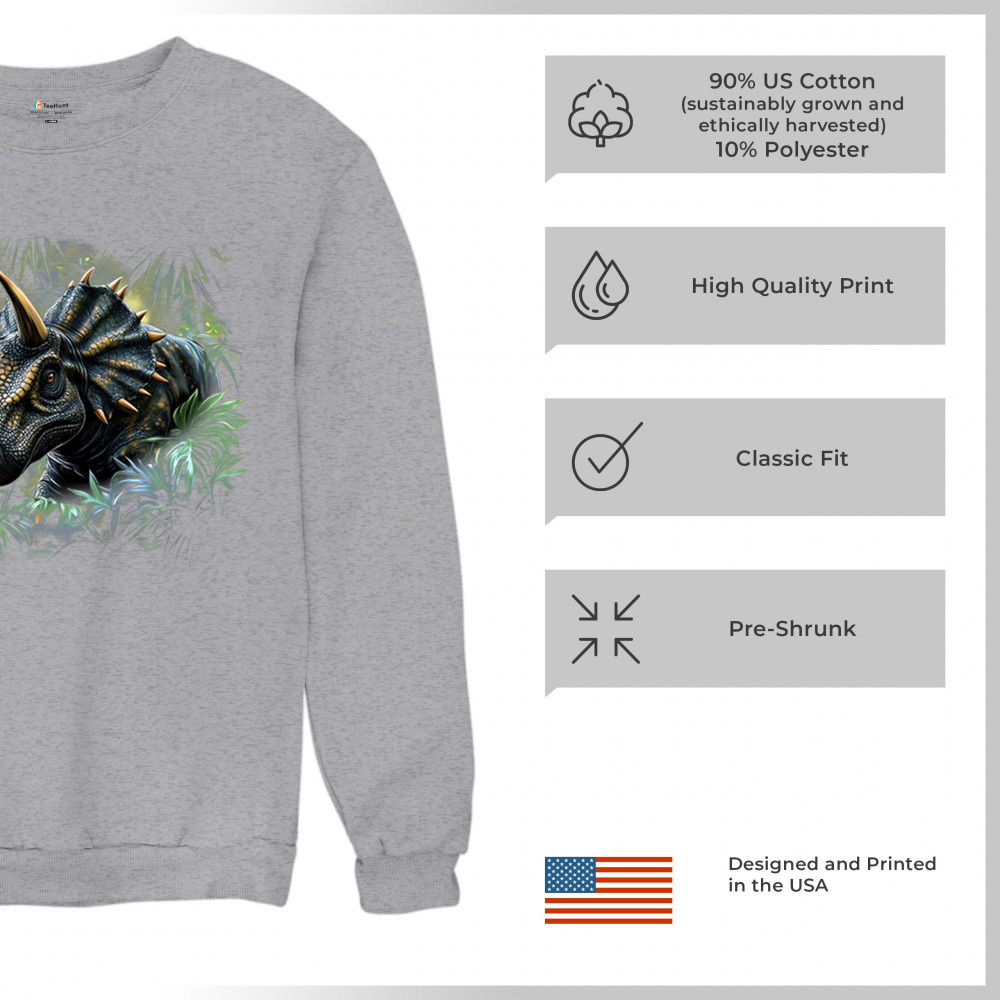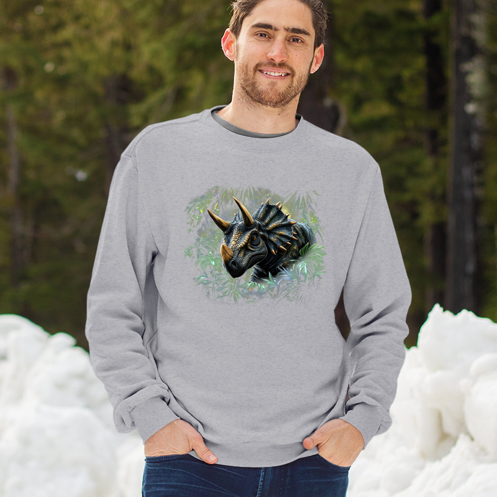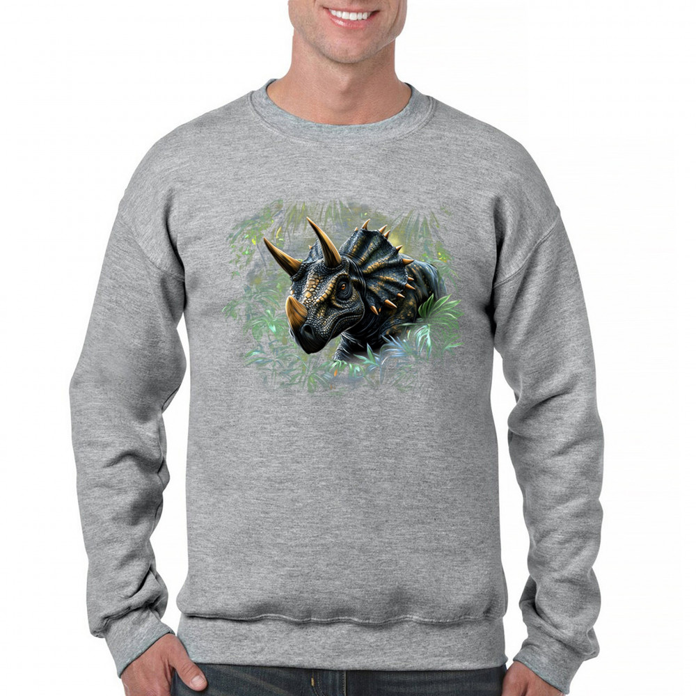 TRICERATOPS JUNGLE sweatshirt dinosaur dino jurassic era prehistoric crewneck gray