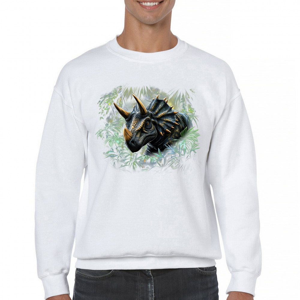 Realistic triceratops in jungle setting. Great for dino fans, fossil lovers, Jurassic exhibits, and prehistoric outdoor adventures.