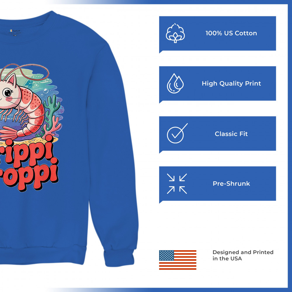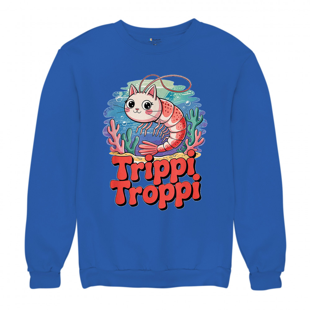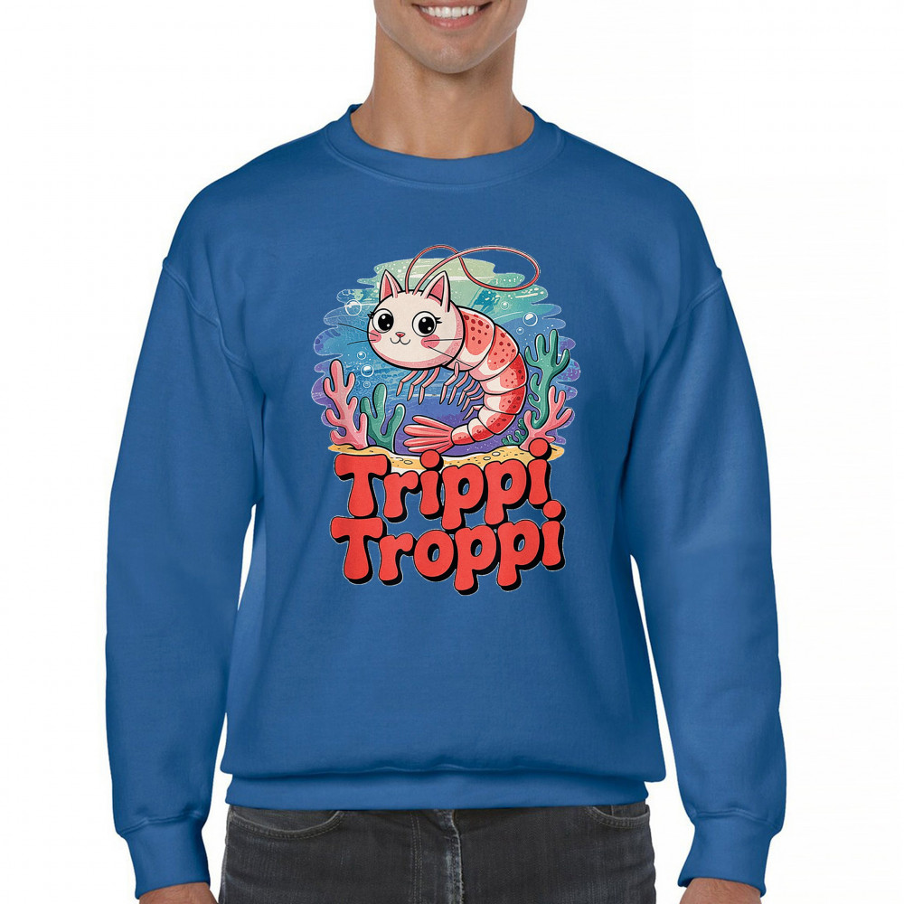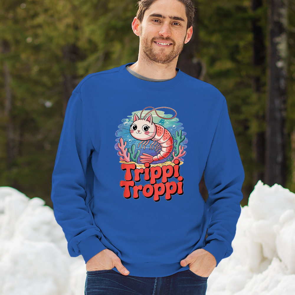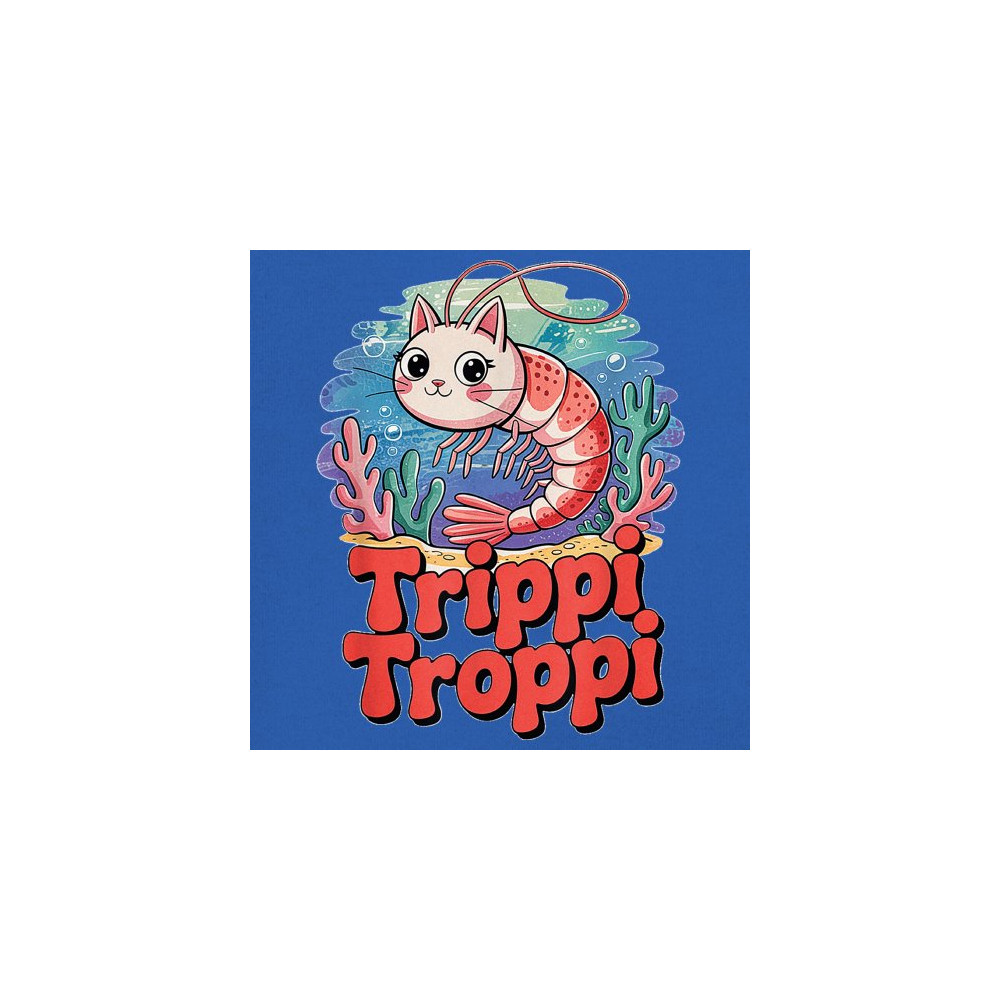 Dive deep into absurdity with Trippi Troppi—a surreal shrimp-cat fusion straight out of Italian Brainrot territory. This design captures cursed animal chaos, weirdcore visuals, TikTok meme culture, and underwater fever dream aesthetics. Made for Gen Z humor addicts, ocean meme fans, and ironic fashion lovers alike.