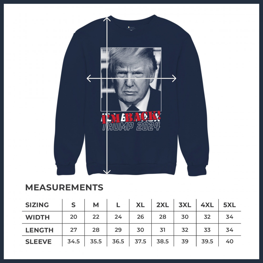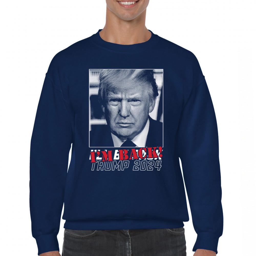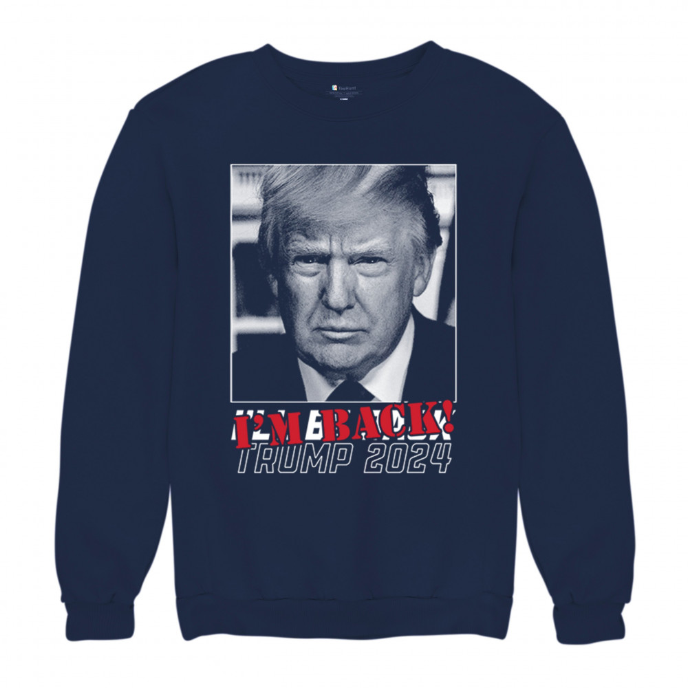 Show your support for Trump 2024 with this "I'm Back!" design, perfect for conservatives, Republicans, and patriotic Americans who believe in the Red Wave.
