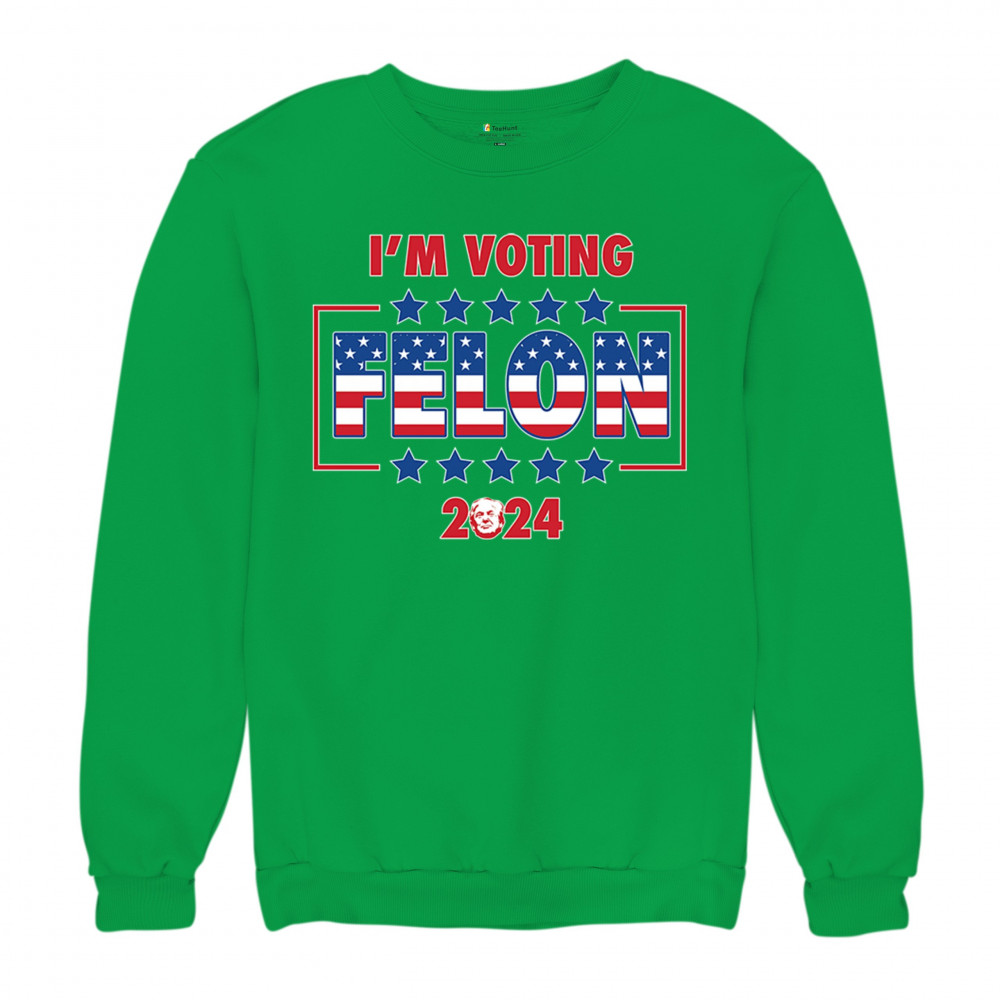 Show your support with the "I'm Voting Felon 2024" design, perfect for conservative patriots and Trump supporters. Featuring an American flag motif.