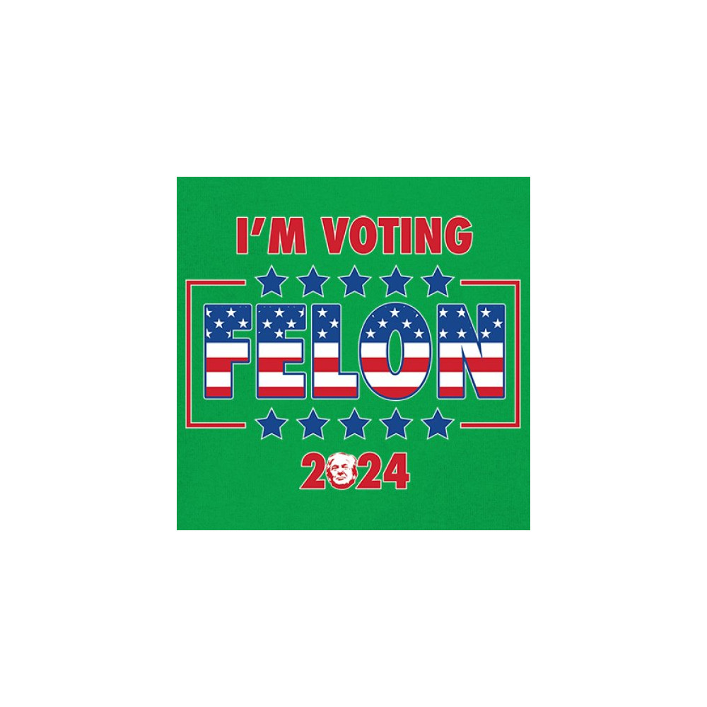 Stand out and express your political beliefs with our "I'm Voting Felon 2024" design. This bold and eye-catching design is perfect for conservative patriots and Trump supporters. Featuring a vibrant American flag motif, it’s ideal for rallies, political events, and daily wear. Show your commitment to America First and your defiance against opposition. This design is a perfect gift for like-minded friends and family who support the same values and are proud to show it.