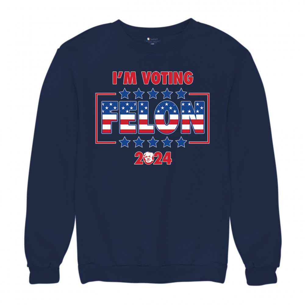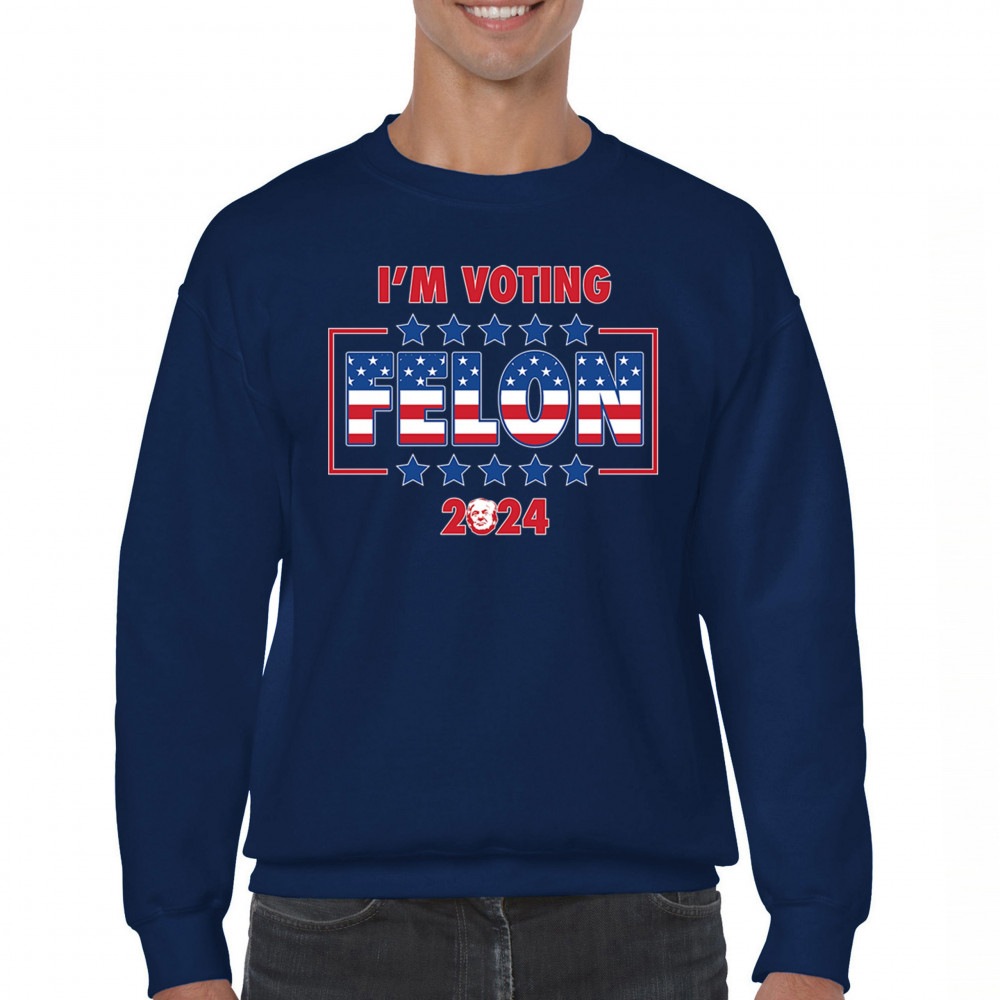 Show your support with the "I'm Voting Felon 2024" design, perfect for conservative patriots and Trump supporters. Featuring an American flag motif.