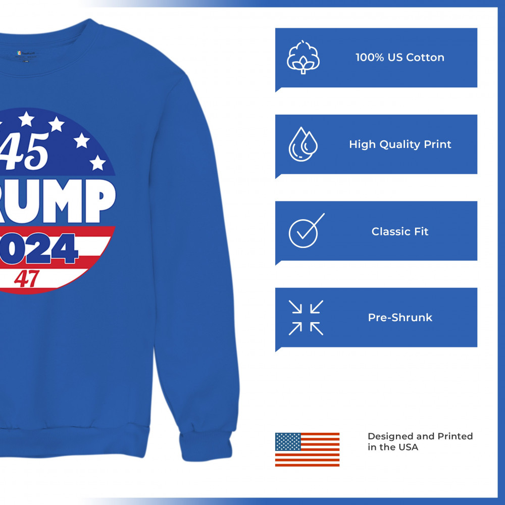 Embrace your conservative pride with this bold "45 TRUMP 2024" design. Representing America First, Republican victory, and the people’s mandate, it’s the perfect way to showcase your support for Donald J. Trump’s historic journey to the 47th presidency. Whether at rallies, political events, or casual outings, this emblem unites Trump supporters in a fight for freedom and patriotism.