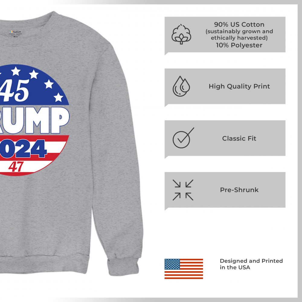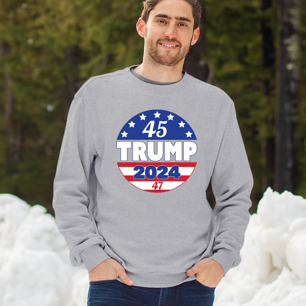 Embrace your conservative pride with this bold "45 TRUMP 2024" design. Representing America First, Republican victory, and the people’s mandate, it’s the perfect way to showcase your support for Donald J. Trump’s historic journey to the 47th presidency. Whether at rallies, political events, or casual outings, this emblem unites Trump supporters in a fight for freedom and patriotism.