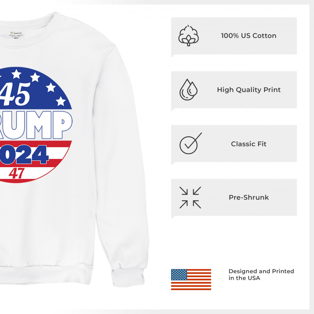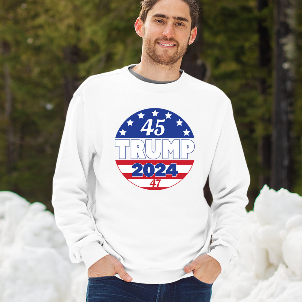Embrace your conservative pride with this bold "45 TRUMP 2024" design. Representing America First, Republican victory, and the people’s mandate, it’s the perfect way to showcase your support for Donald J. Trump’s historic journey to the 47th presidency. Whether at rallies, political events, or casual outings, this emblem unites Trump supporters in a fight for freedom and patriotism.