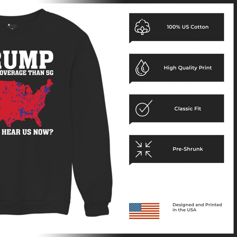 "Trump: Better Coverage Than 5G" design celebrates Republican victory and America First values. Perfect for rallies, events, or gifting patriots.