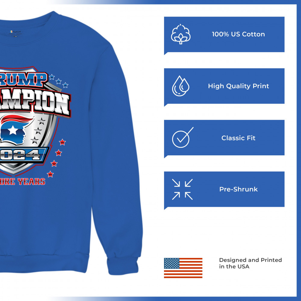 Celebrate Trump’s return with the "Trump Champion 2024" design. Perfect for patriots, conservatives, and those supporting 4 More Years of victory!