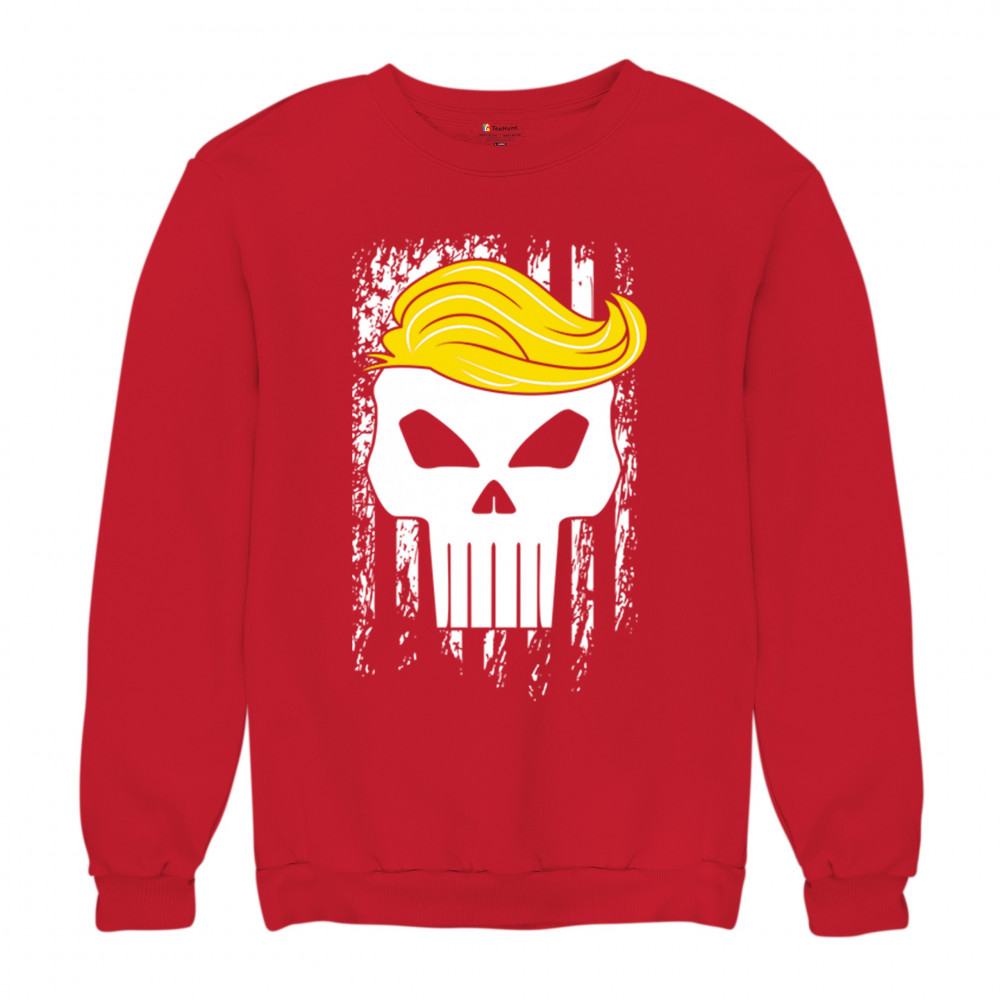 Explore our exclusive design - a symbol of unwavering support for America. Featuring a distressed flag and a skull with Trump's hair, it's perfect for patriotic conservatives
