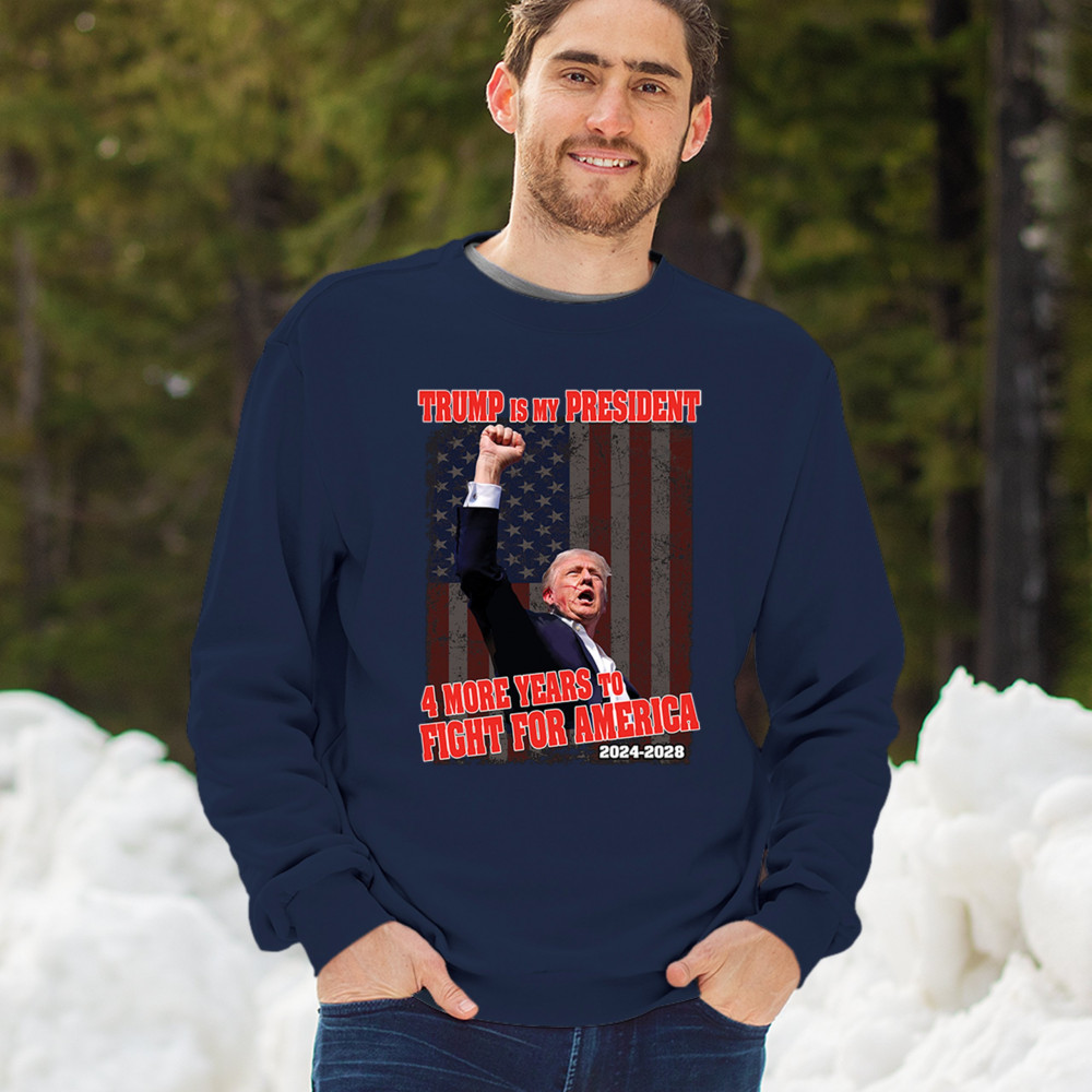 Show your support for Trump with the "4 More Years to Fight for America" design. Perfect for patriots, conservatives, and America First advocates.
