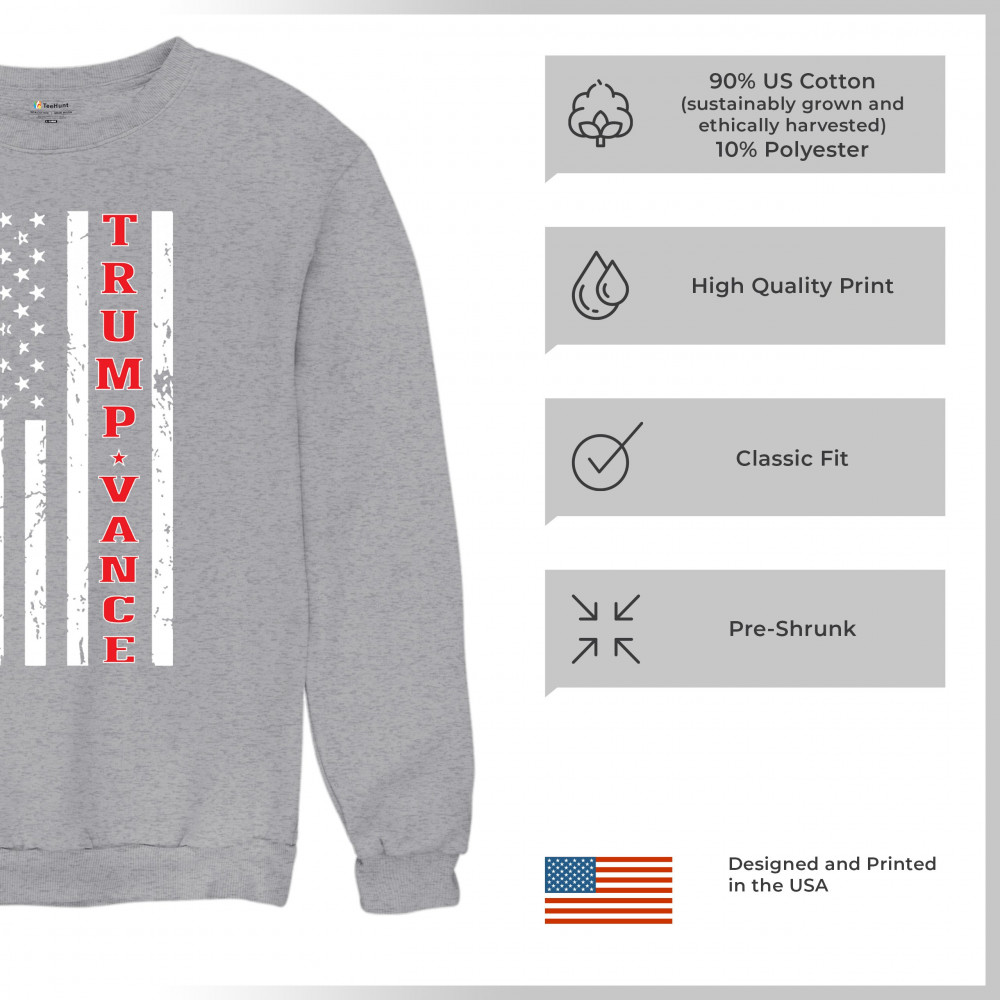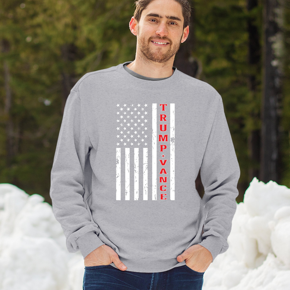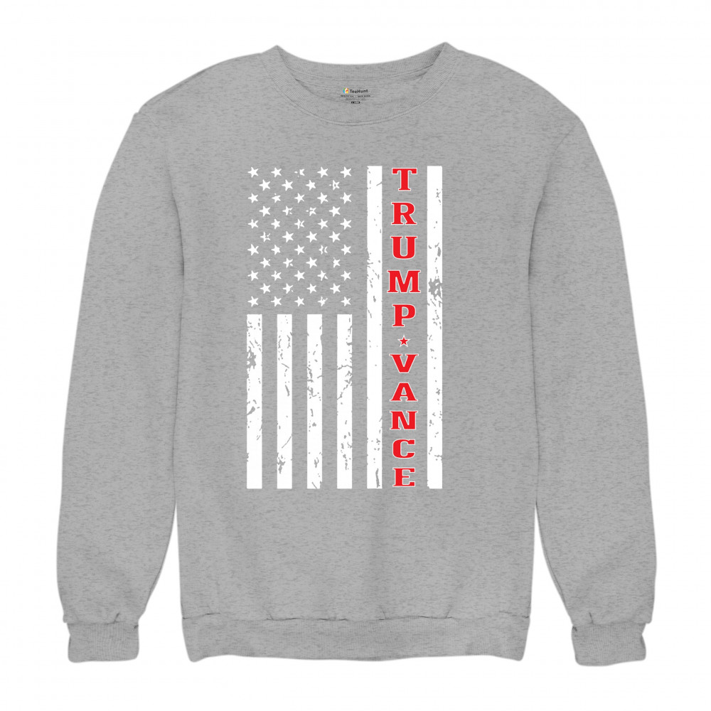 TRUMP JD VANCE 2024 AMERICAN FLAG sweatshirt vp patriotic vote red fjb crewneck gray