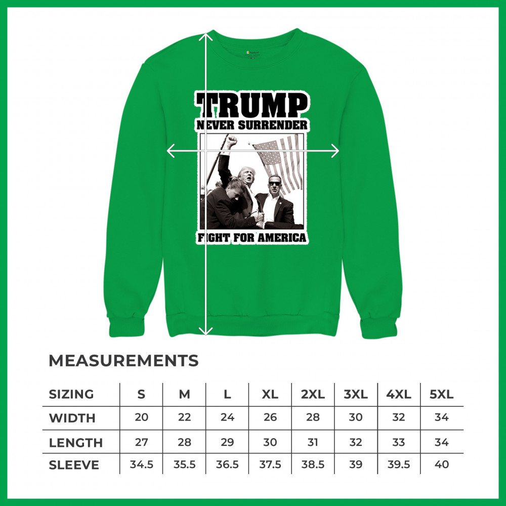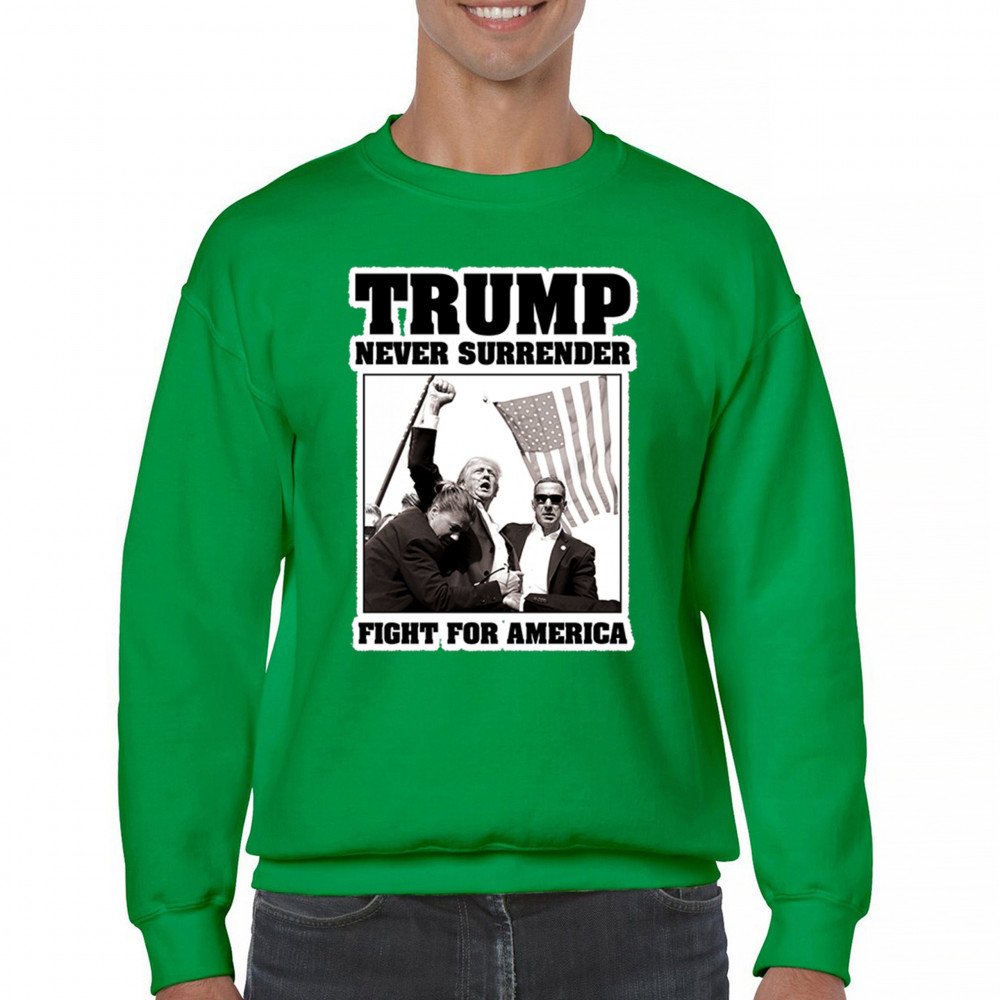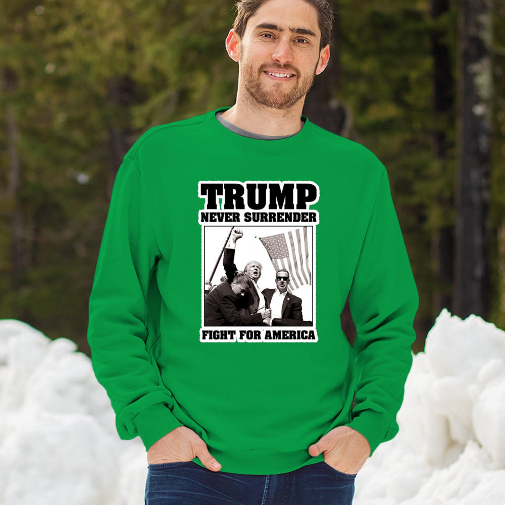 Express your unwavering support with the bold "Trump Never Surrender" design, perfect for rallies and everyday wear. Durable and stylish, show your patriotism proudly.