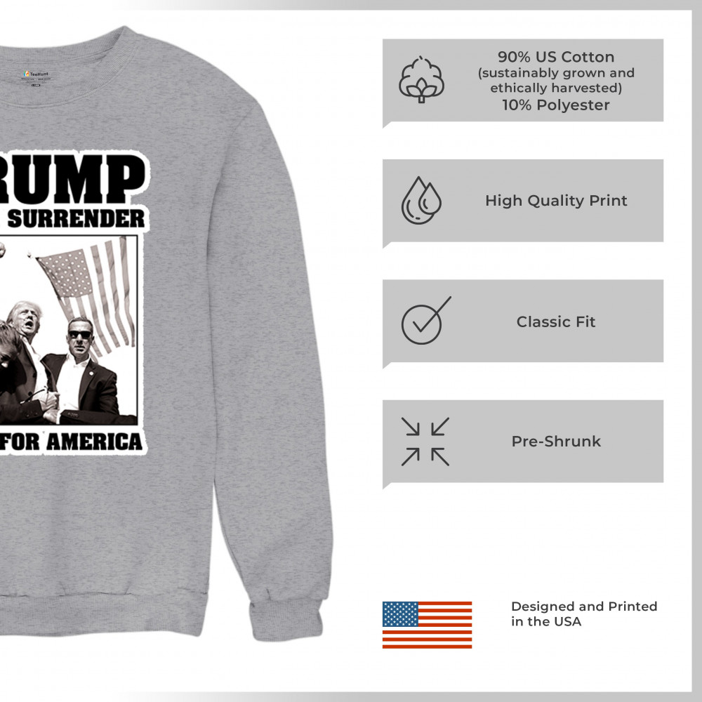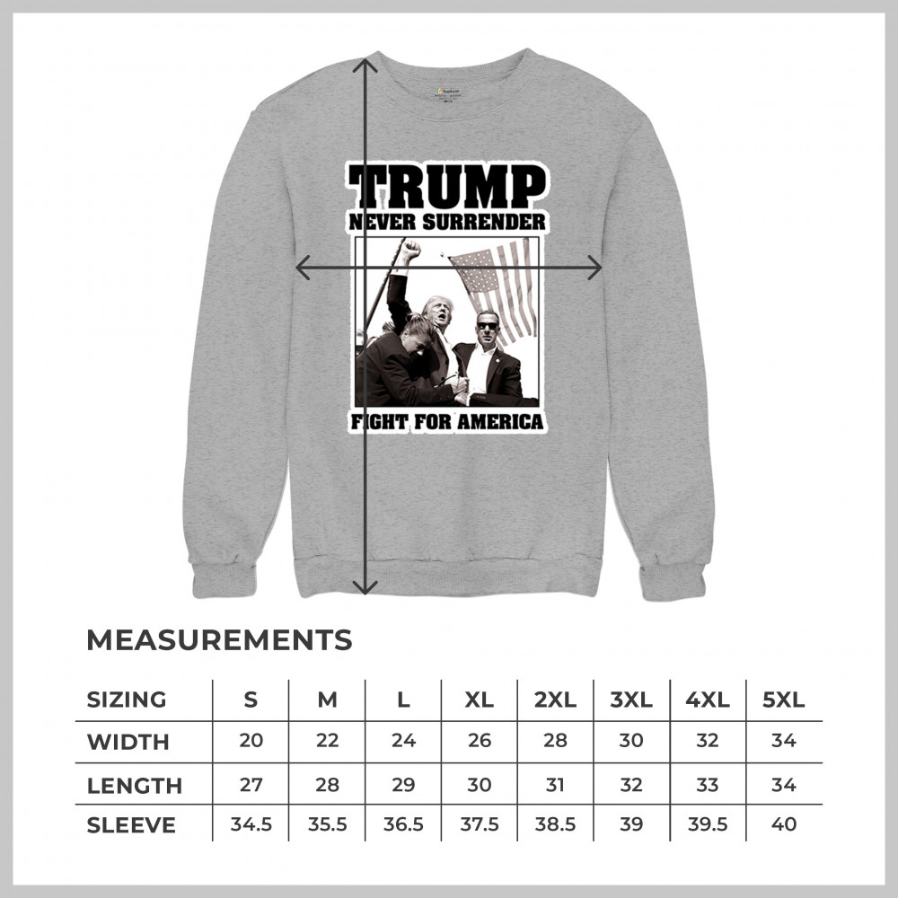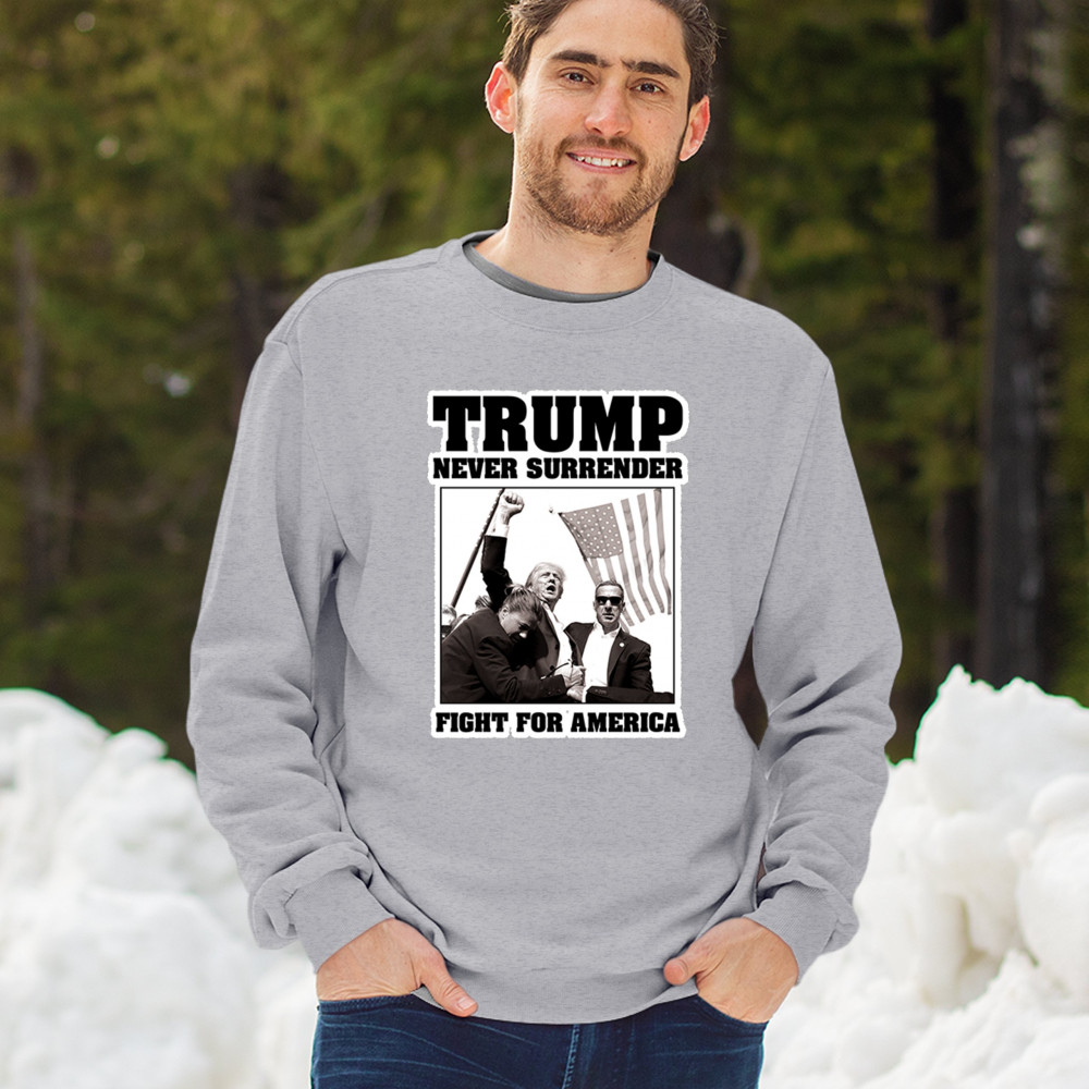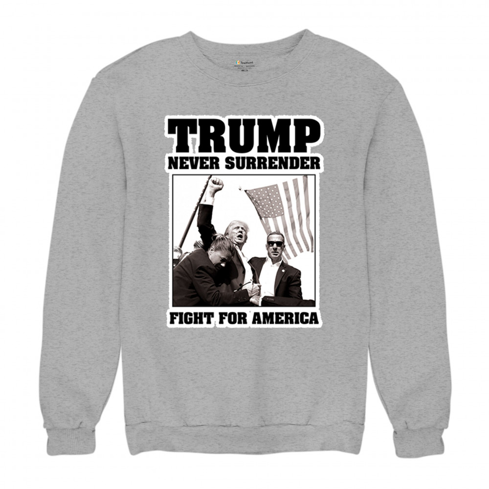 Express your unwavering support with the bold "Trump Never Surrender" design, perfect for rallies and everyday wear. Durable and stylish, show your patriotism proudly.