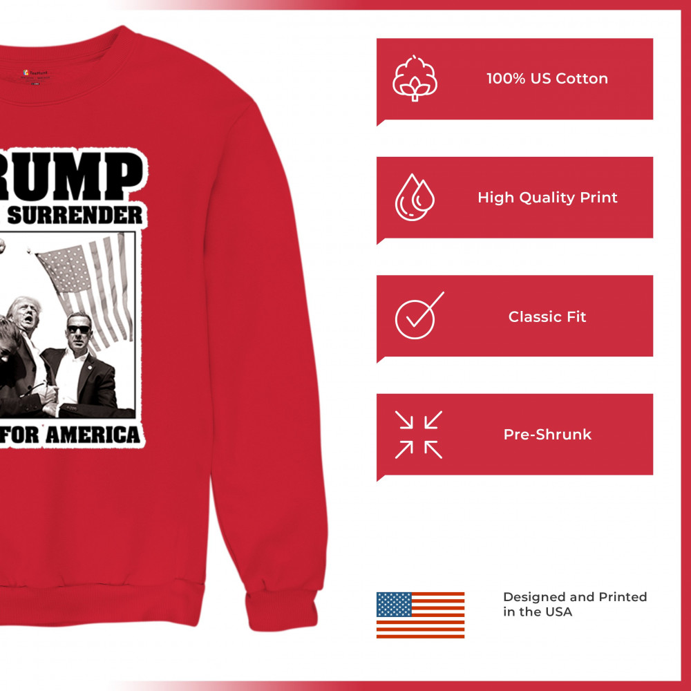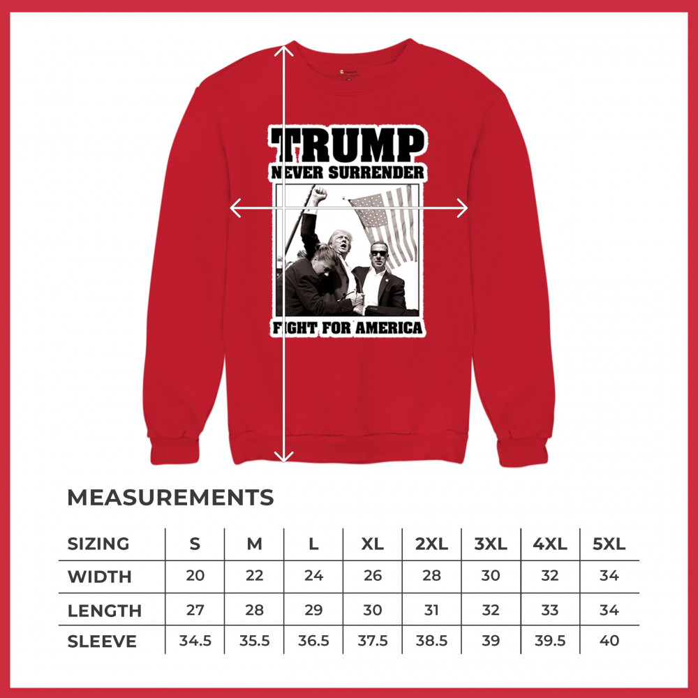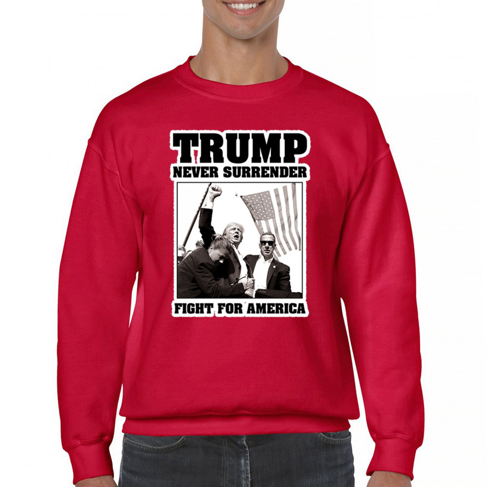 Express your unwavering support with the bold "Trump Never Surrender" design, perfect for rallies and everyday wear. Durable and stylish, show your patriotism proudly.