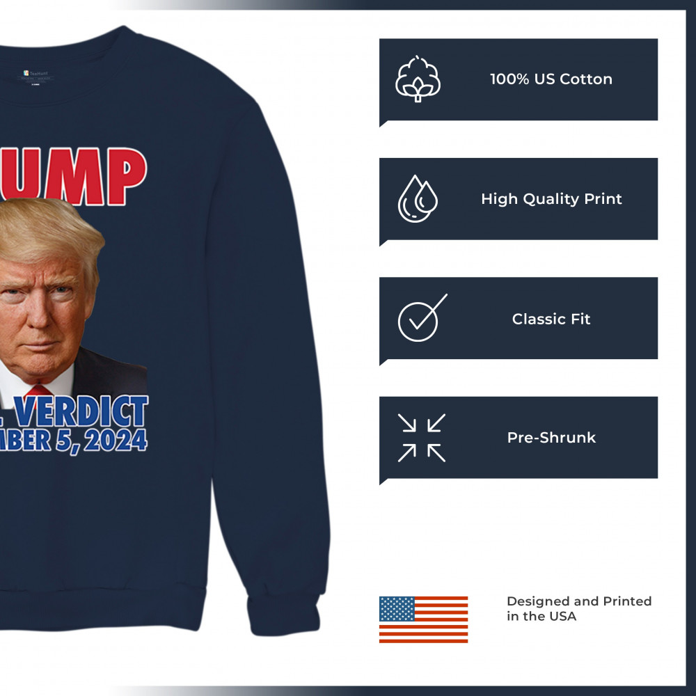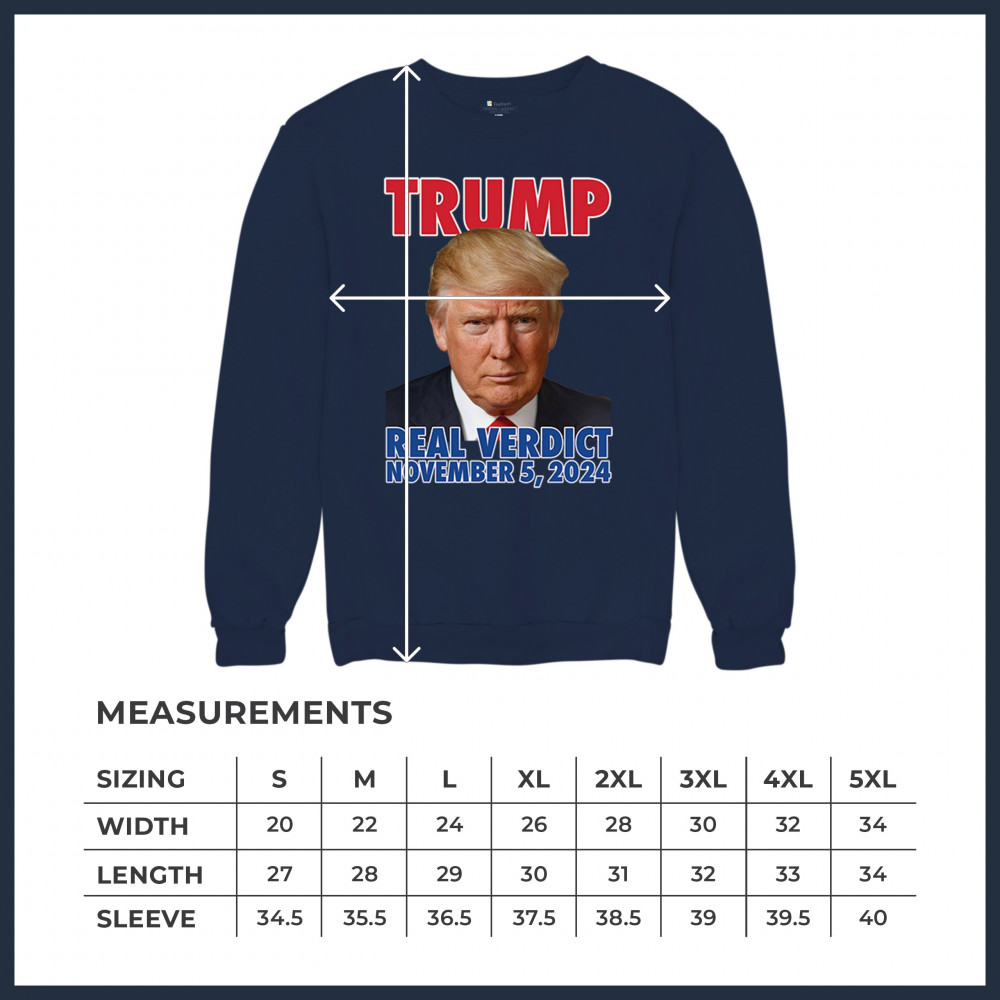 Show your support for Donald Trump with our bold "Real Verdict November 5, 2024" design. Perfect for Trump supporters, MAGA movement enthusiasts, and those who mock Biden with the "Let's Go Brandon" slogan.