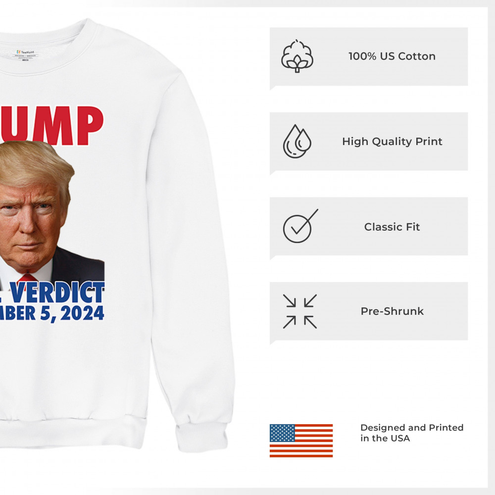 Show your support for Donald Trump with our bold "Real Verdict November 5, 2024" design. Perfect for Trump supporters, MAGA movement enthusiasts, and those who mock Biden with the "Let's Go Brandon" slogan.