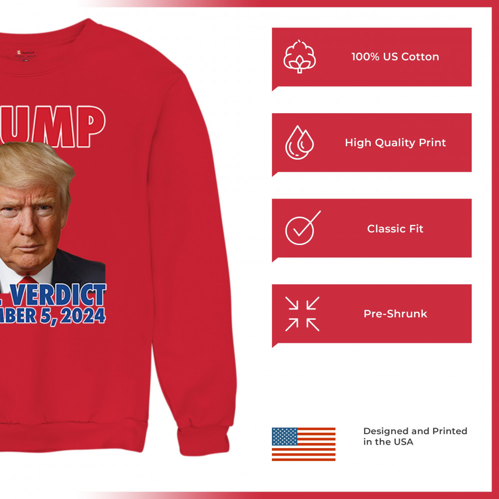 Show your support for Donald Trump with our bold "Real Verdict November 5, 2024" design. Perfect for Trump supporters, MAGA movement enthusiasts, and those who mock Biden with the "Let's Go Brandon" slogan.