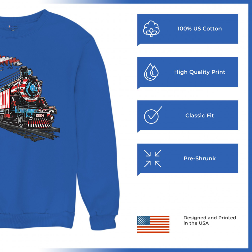 Hop on the Trump Train and support America First! This bold, patriotic tee is perfect for Republicans, conservatives, and the Red Wave movement.