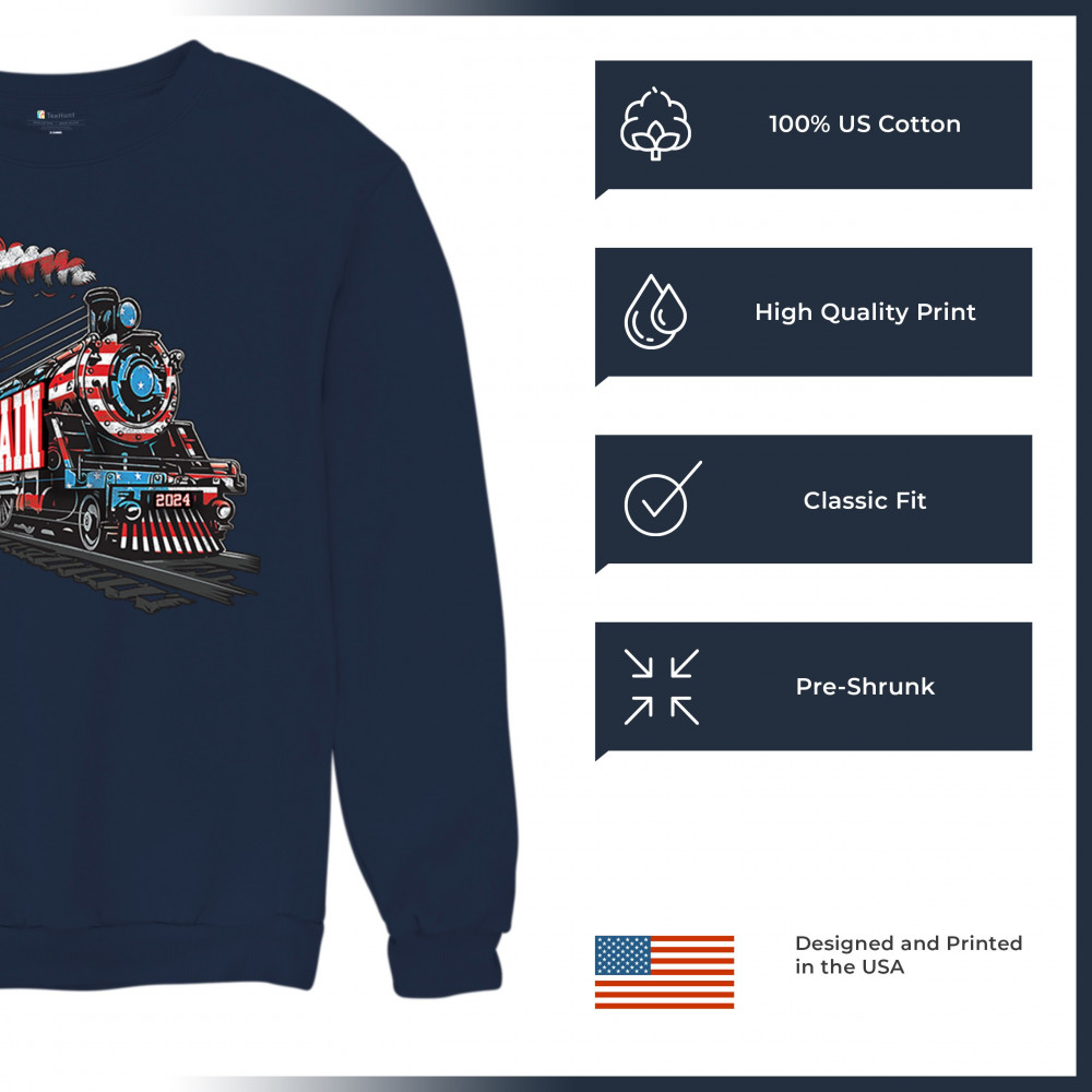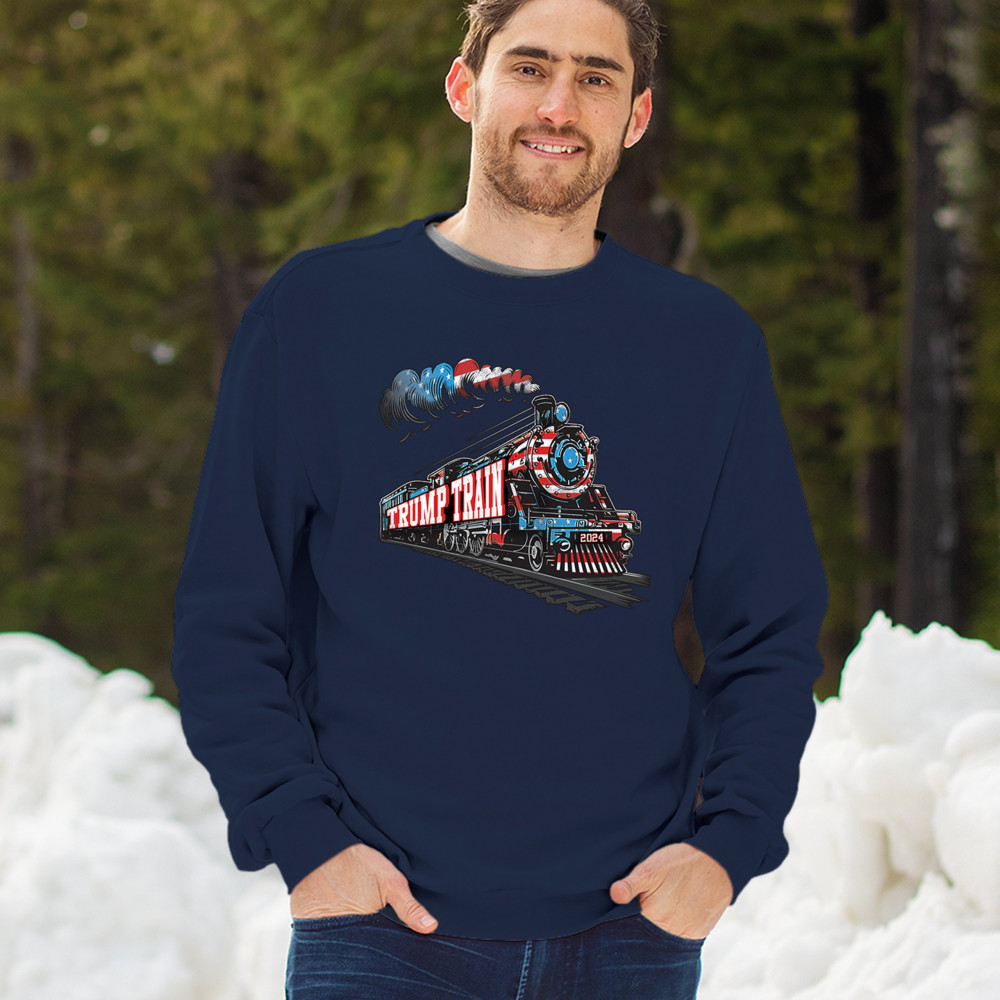Celebrate the Trump Train with this bold, patriotic design. Featuring a steam engine wrapped in the American flag, this tee is perfect for Trump supporters and conservatives looking to make a statement. Join the Red Wave, fight for victory, and showcase your support for the 47th President. Whether at rallies or casual events, this design represents we the people have spoken and the push for 4 More Years.