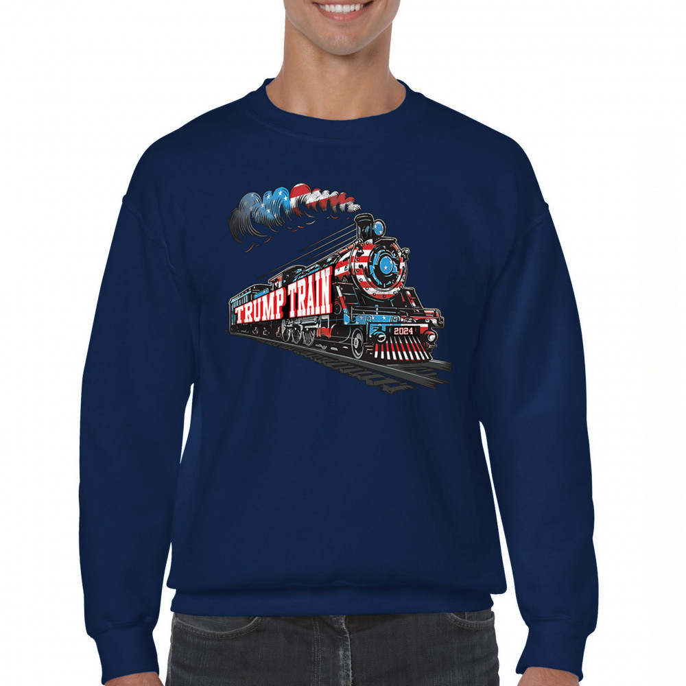 Hop on the Trump Train and support America First! This bold, patriotic tee is perfect for Republicans, conservatives, and the Red Wave movement.