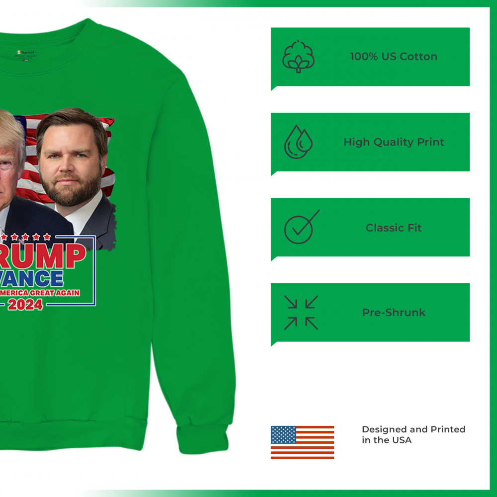 Support the Trump-Vance 2024 campaign with our exclusive design, featuring prominent images of Donald Trump and J.D. Vance set against the American flag. This design is perfect for rallies, political events, and daily wear, showcasing your dedication to the conservative movement. Its bold graphics and patriotic theme make it a standout piece for any supporter. Join the movement and proudly display your support with this dynamic and inspiring design.
