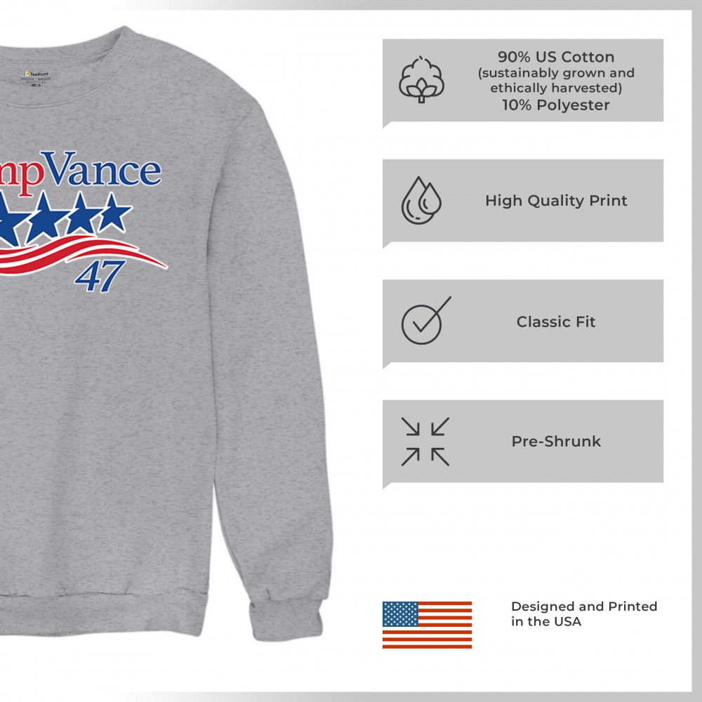 Celebrate patriotism and conservative strength with the "Trump Vance 47" design, a perfect tribute to the America First movement. This design features a bold representation of Donald J. Trump and J.D. Vance’s commitment to American values, proudly showcasing the Red Wave. For supporters who want to rally behind Republican ideals, this is the design to wear and share, symbolizing hope, unity, and victory for America's future.