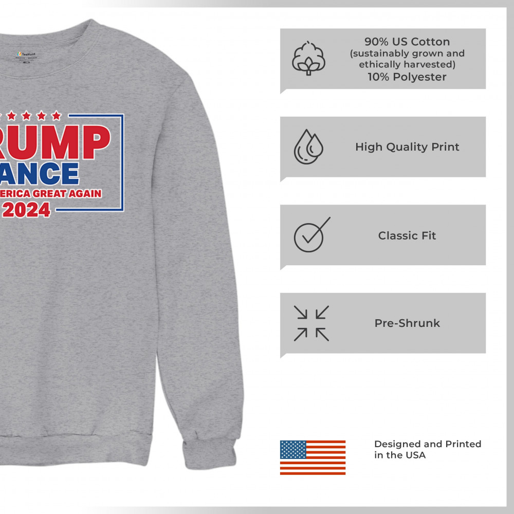 Show your support for Trump-Vance 2024 with this patriotic design featuring the American flag and bold slogan. Perfect for rallies and conservative events.