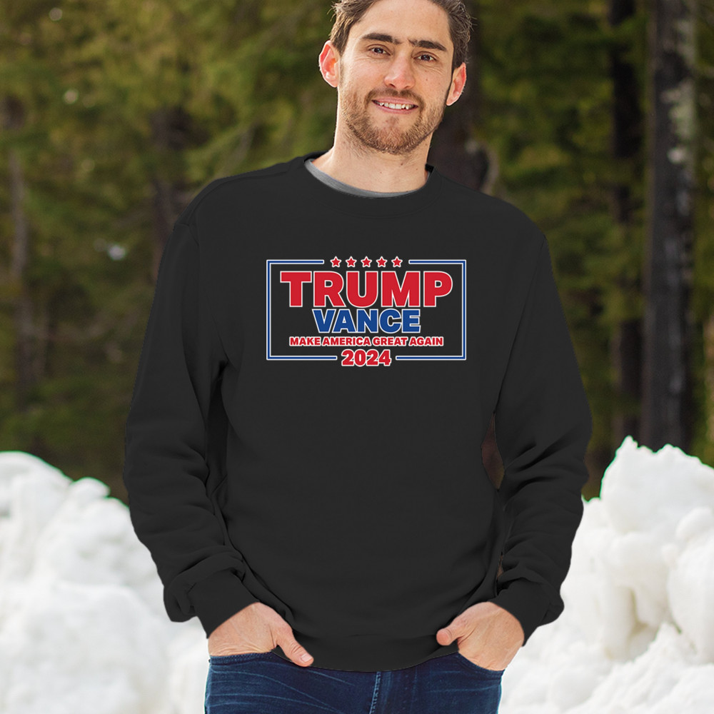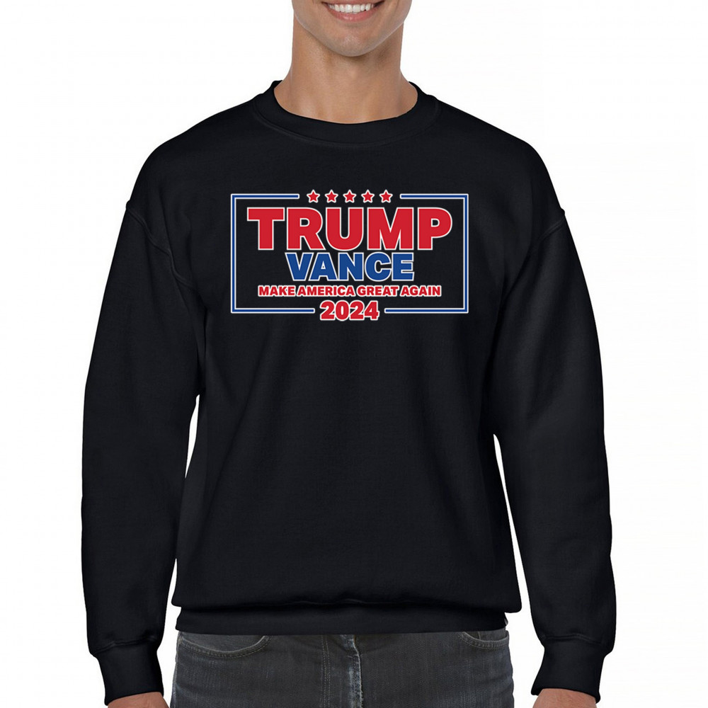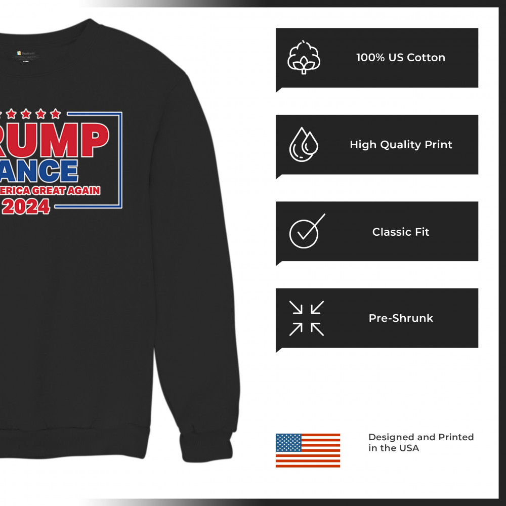 Show your support for Trump-Vance 2024 with this patriotic design featuring the American flag and bold slogan. Perfect for rallies and conservative events.