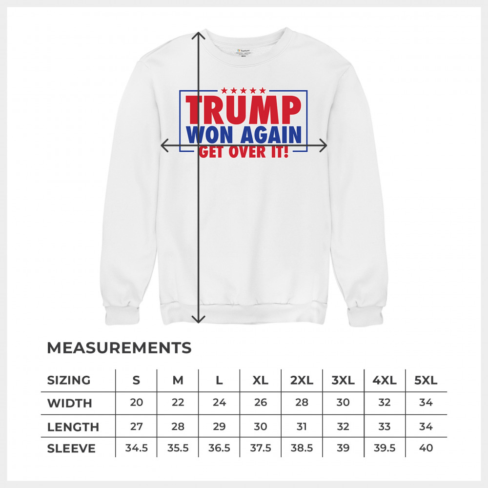 Express your Republican pride with our bold "Trump Won Again" design, celebrating America First, the 47th President, and the Red Wave movement. This unique piece showcases your unwavering support for conservative values and the people's mandate. Perfect for patriots, this statement piece reflects your belief in never surrendering and standing strong for America.