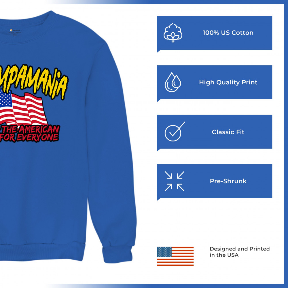 Show your patriotic pride with the "Trumpamania" design. Perfect for rallies, it embodies conservatism, trust in God, and the fight for America.