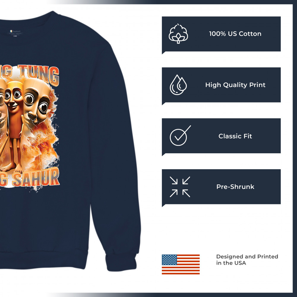 Brace yourself for pure meme insanity with the Tung Tung Tung Sahur shirt—a cursed-core fever dream built from TikTok chaos and Gen Z humor. This design blends internet meme culture, ironic fashion, brainrot visuals, and Gen Alpha absurdity. Perfect for those who wear memes, laugh at chaos, and live for viral trends.
