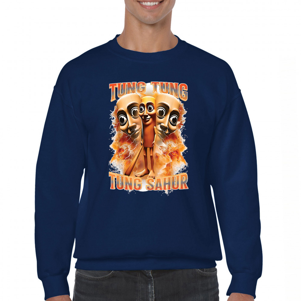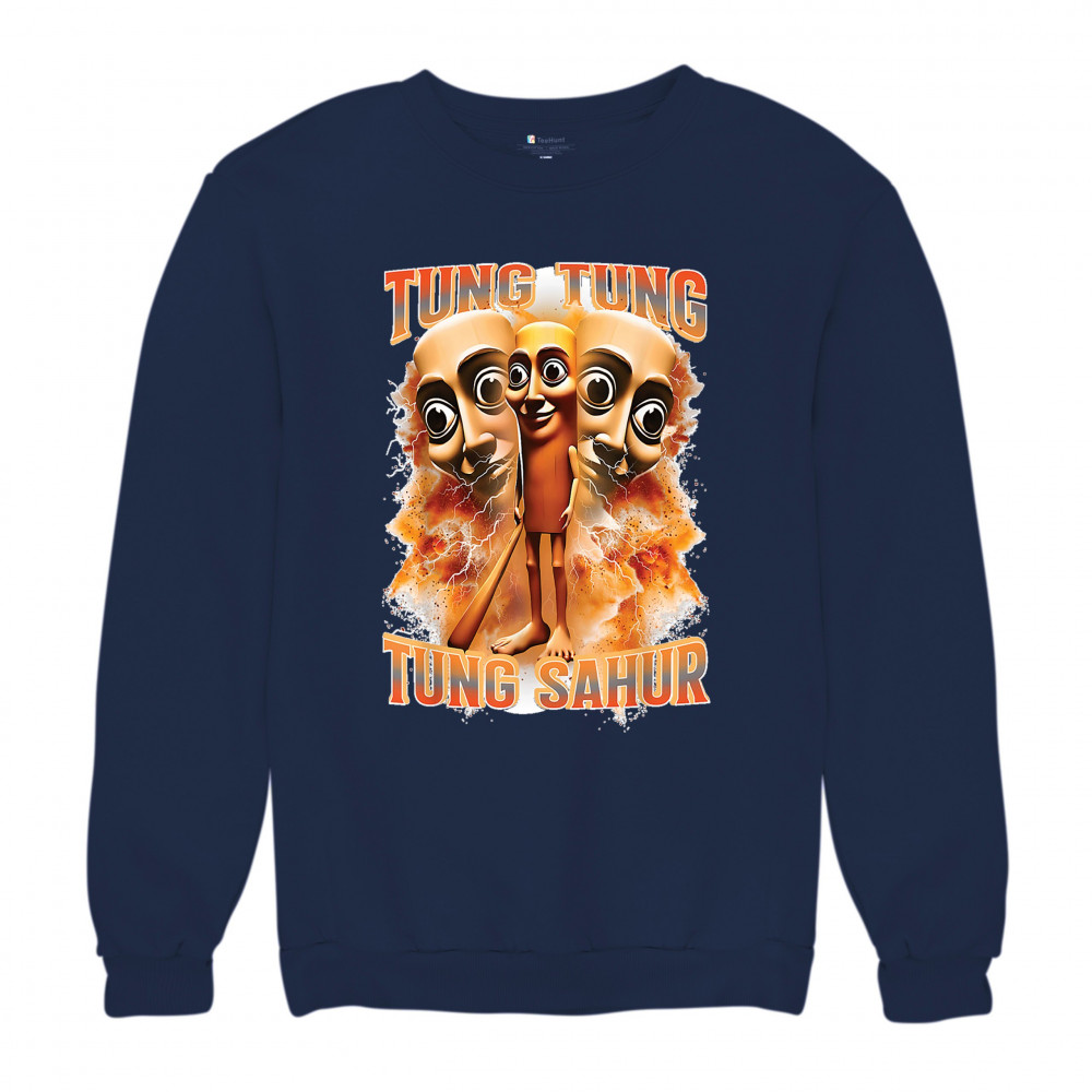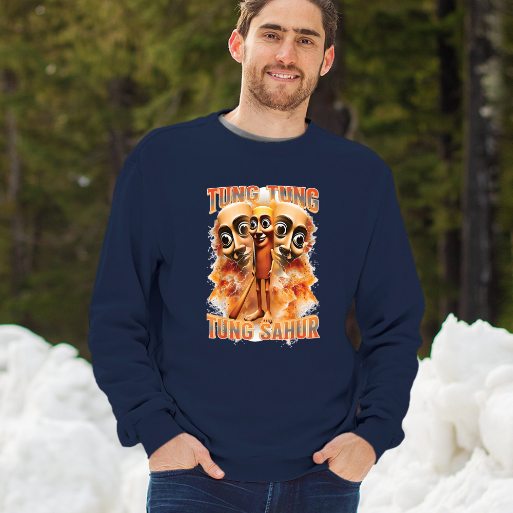 Tung Tung Tung Sahur design blends cursed-core, meme humor, Gen Z fashion, ironic style, and viral brainrot absurdity into one wild tee.