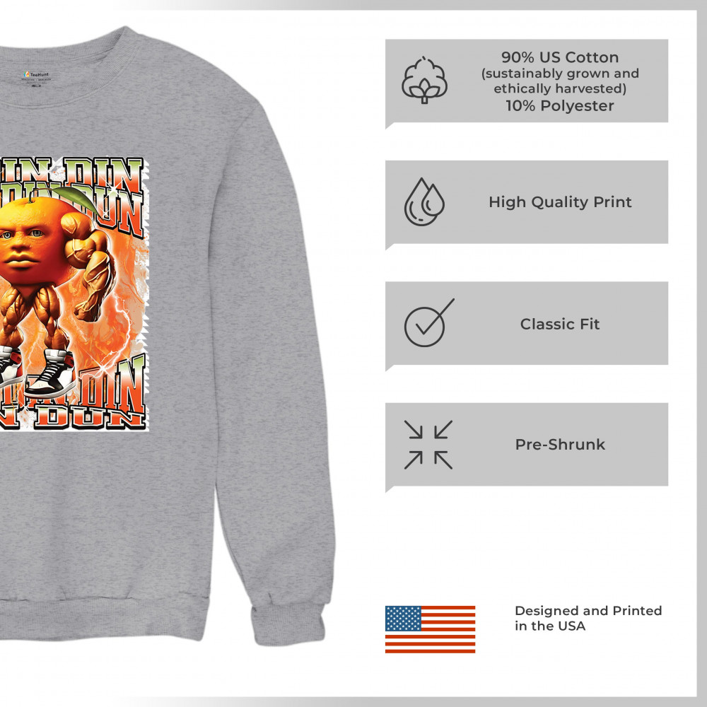 Meet U Din Din Din Din Dun Ma Din Din Din Dun—a jacked-up citrus monstrosity marching straight out of brainrot hell. This design fuses cursed fruit humor, muscle-core absurdity, weirdcore meme style, and TikTok chaos into one deranged fashion statement. Built for meme heads, gym rats with irony, and Gen Z absurdists.