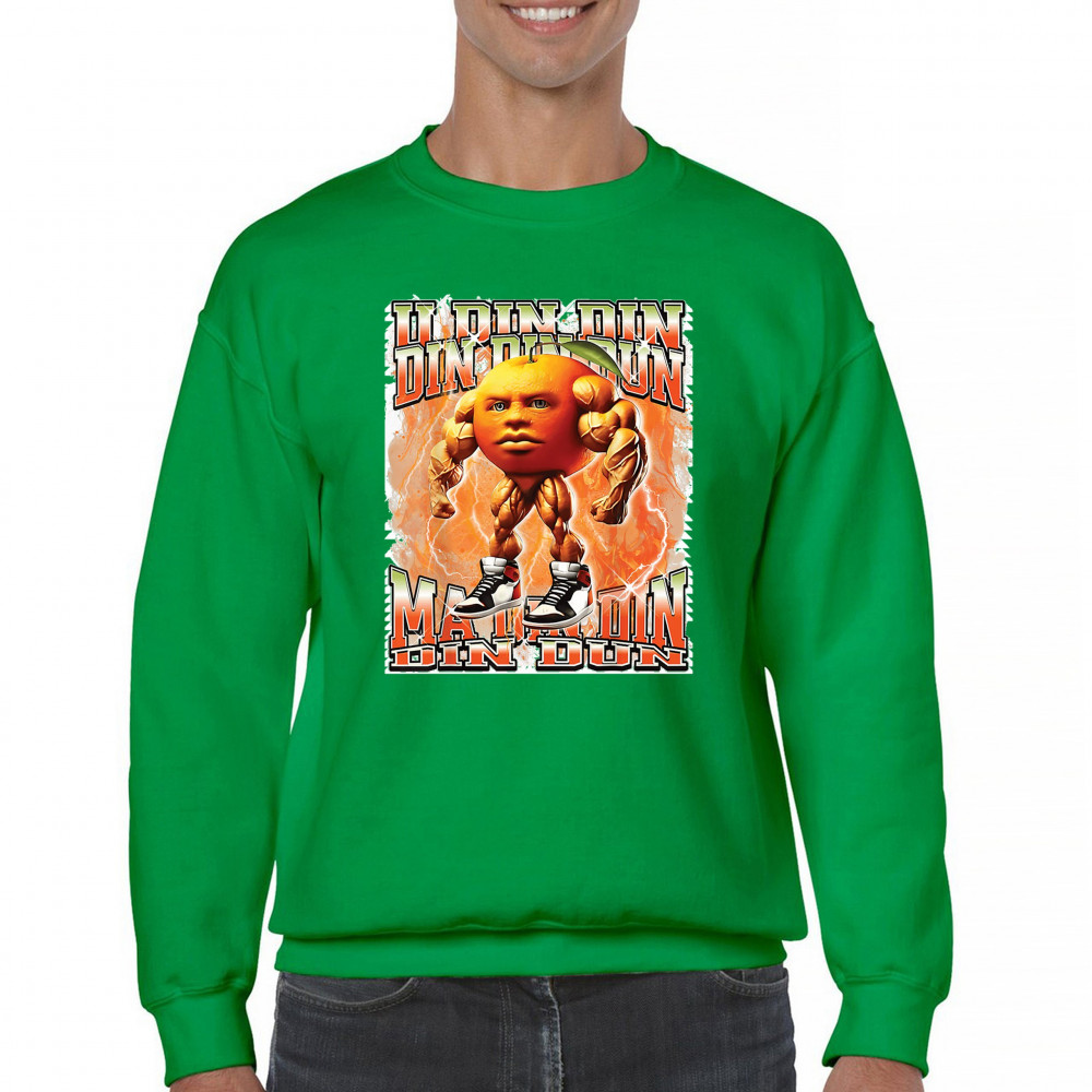 Meet U Din Din Din Din Dun Ma Din Din Din Dun—a jacked-up citrus monstrosity marching straight out of brainrot hell. This design fuses cursed fruit humor, muscle-core absurdity, weirdcore meme style, and TikTok chaos into one deranged fashion statement. Built for meme heads, gym rats with irony, and Gen Z absurdists.
