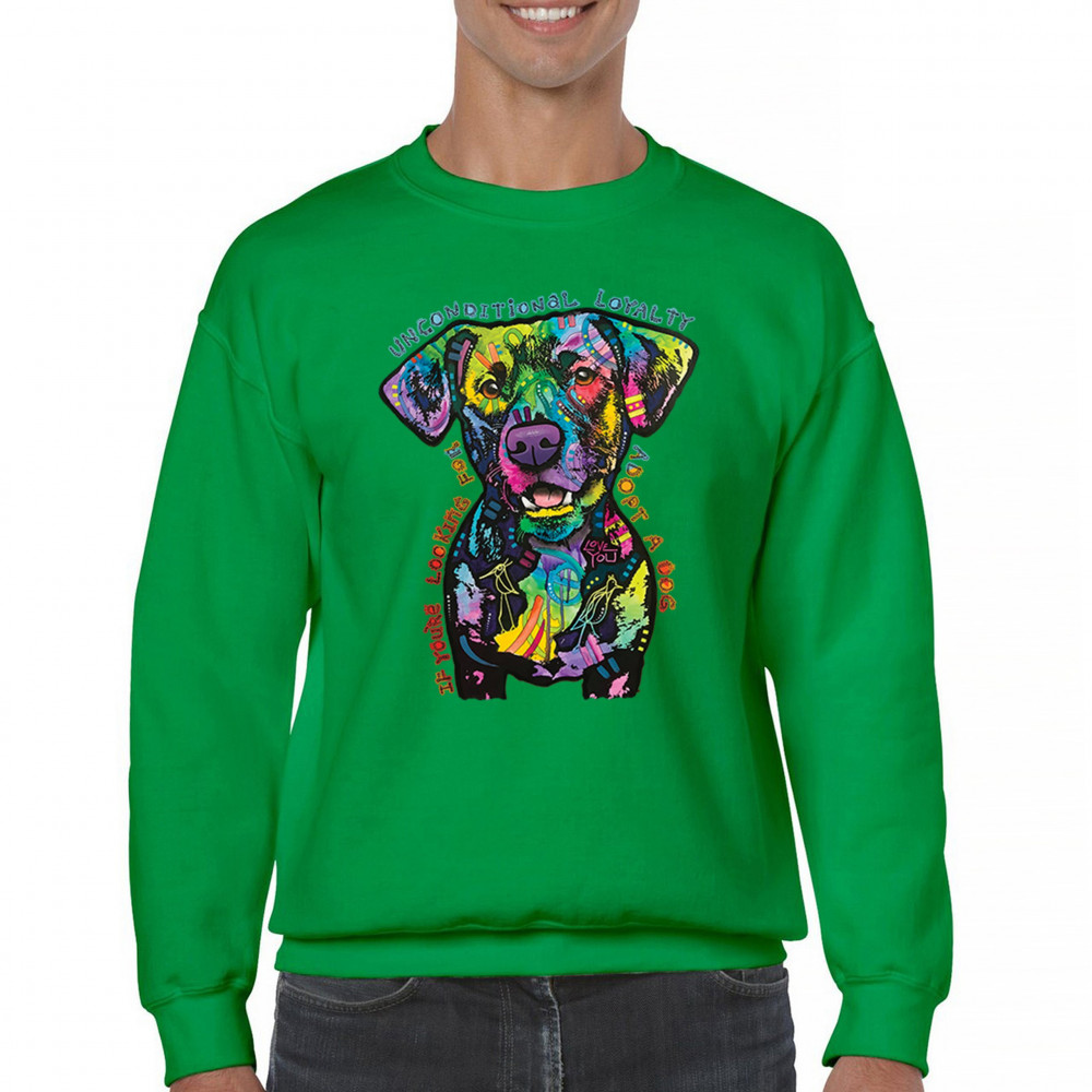 UNCONDITIONAL LOYALTY sweatshirt adopt a dog dean russo pets crewneck green